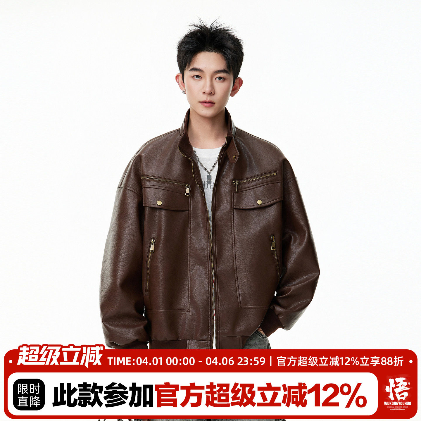 淘宝悟空有货美式复古荔枝纹PU皮衣外套男潮牌街头宽松廓形机车服夹克