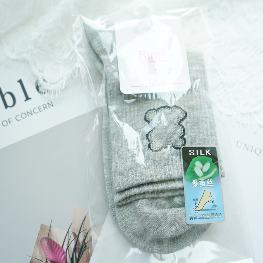 淘宝Rime韵魅桑蚕丝提花休闲抗菌女袜无骨卡通小熊头亲肤舒适春夏棉袜