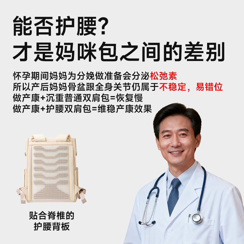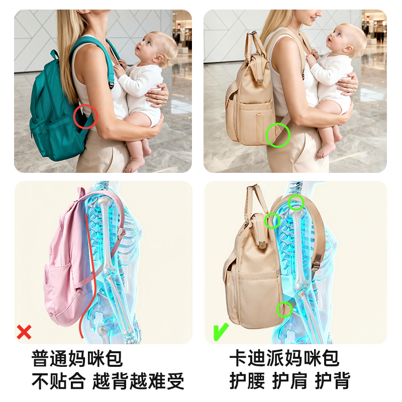 天猫卡迪派带娃包母婴外出轻便妈咪包2025升级款背负护腰护脊双肩负包