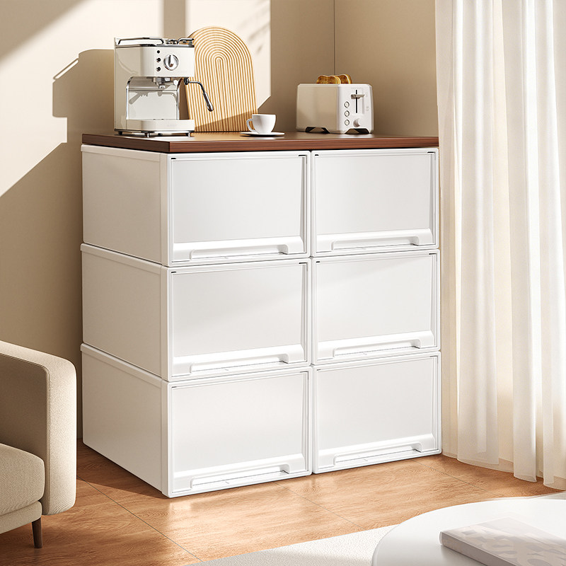 天猫日本抽屉式收纳柜落地多层阳台杂物储物斗柜带木板塑料衣服收纳箱