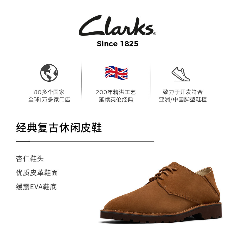 天猫Clarks其乐ClassyLiteQk男鞋春季新品经典商务休闲皮鞋男Vibram底