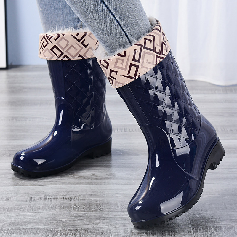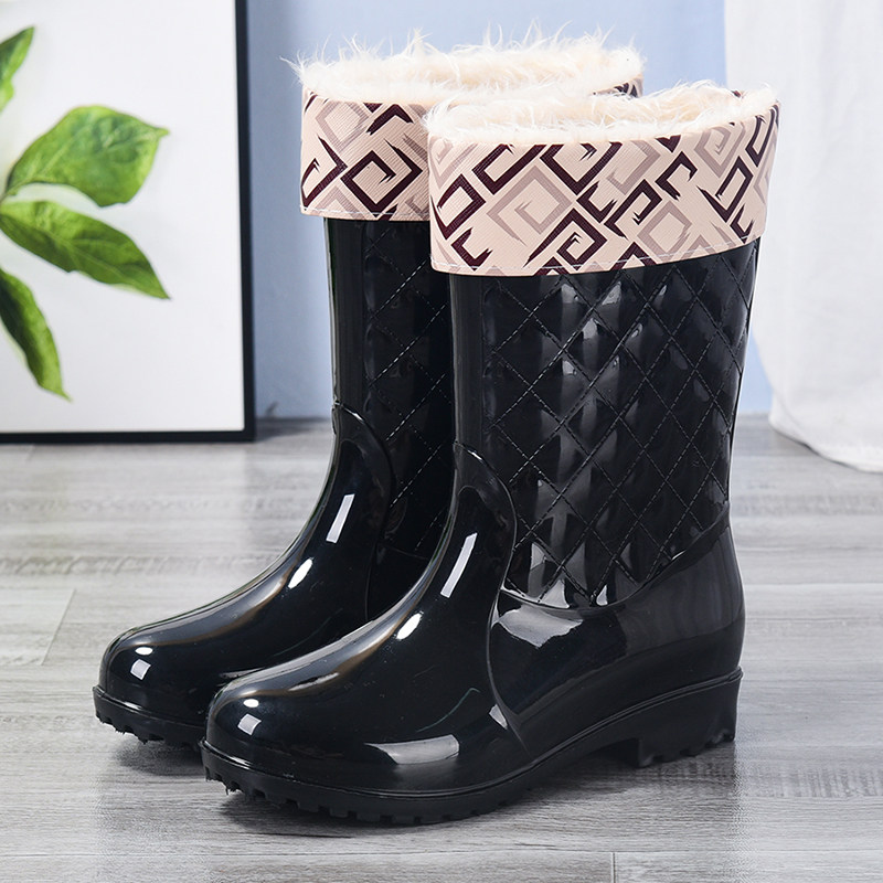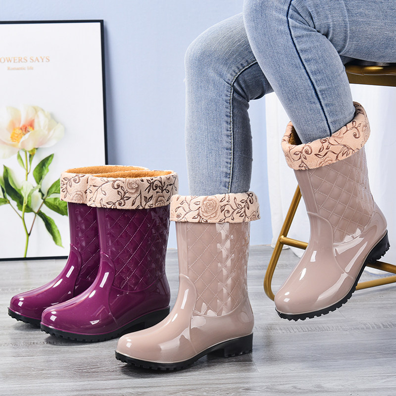 淘加绒雨鞋女短筒防滑时尚成人防水雨靴保暖胶鞋厨房洗车工作水鞋女