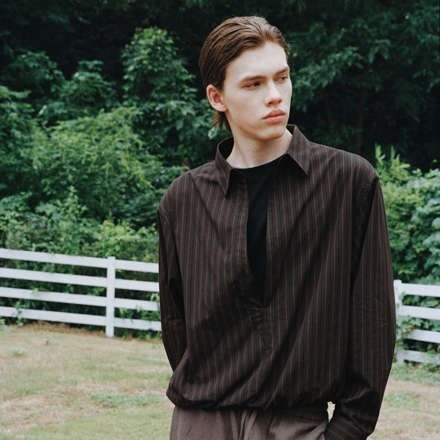 VLABMADE松弛感条纹深V领假两件衬衫,专为追求舒适与时尚的都市男性打造。采用宽松短阔版型设计,融合慵懒随性的松弛感与现代通勤的利落气质。经典条纹元素搭配深V领造型,视觉上拉长颈部线条,增添几分不羁魅力。假两件式剪裁巧妙营造层次感,无需复杂搭配即可展现精致造型。精选亲肤透气面料,穿着轻盈自在,适合日常通勤、休闲聚会等多种场合。无论是搭配西裤还是牛仔裤,都能轻松驾驭,彰显低调而有品位的男性风格。VLABMADE以简约设计诠释当代男士的从容态度,是衣橱中不可或缺的百搭单品。