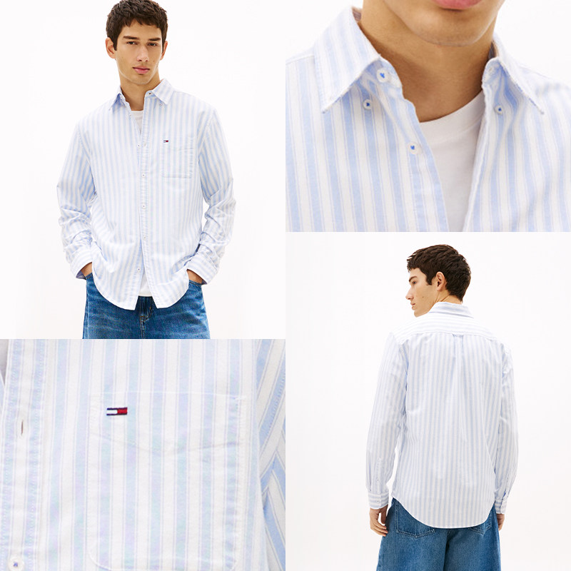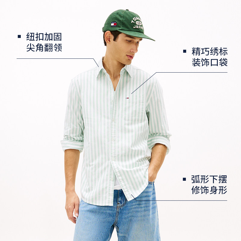 Tommy 2026春夏新款男式条纹牛津纺长袖衬衫外套,精选100%纯棉面料,透气舒适,亲肤自然。经典条纹设计融合现代剪裁,打造合身版型,兼顾休闲与通勤场景。牛津纺质地挺括有型,耐磨易打理,细节处彰显品质,如精致纽扣与加固缝线。多口袋设计提升实用性,可单穿亦可作轻薄外套,轻松应对春日微凉。无论是搭配西裤还是牛仔裤,都能展现都市男士的优雅与随性,是春季衣橱的百搭之选。Tommy一贯的简约美式风格,让这件衬衫外套成为时尚与功能兼具的理想单品。