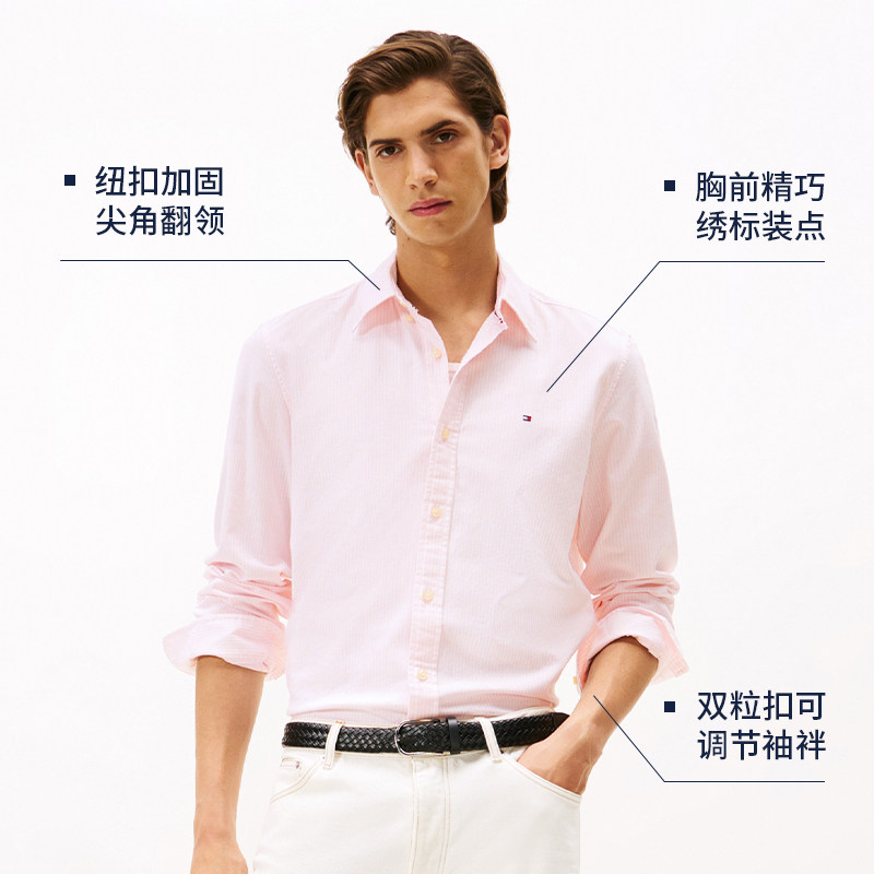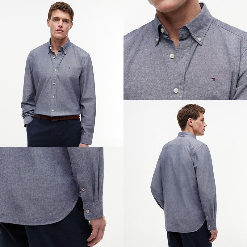 天猫【弹力牛津纺】Tommy秋冬男简约休闲通勤易打理纯色长袖衬衫外套