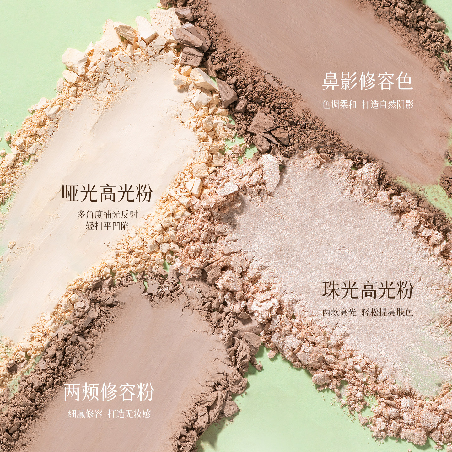 植物主义修容盘是一款集高光、修容、阴影、提亮、眼影与遮瑕于一体的多功能彩妆盘,专为追求自然妆效的消费者设计。采用植物萃取成分,温和亲肤,适合多种肤质使用。四色搭配科学合理,包含哑光修容、细腻高光、自然阴影及提亮色,轻松打造立体轮廓与清透光泽感。粉质细腻顺滑,易晕染不飞粉,显色度适中,可叠加使用。一盘多用,满足日常通勤到精致妆容的全场景需求,便携实用,是打造高级感妆容的理想选择。环保理念与美学设计相结合,让美丽更安心、更自然。