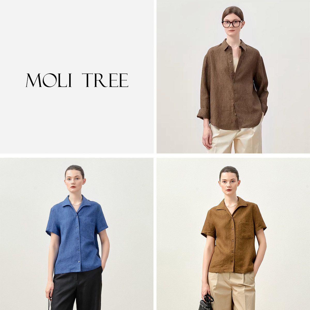 淘宝WCS07182 茉莉雅集 L*P同款意大利全亚麻舒适翻领衬衫连衣裙女