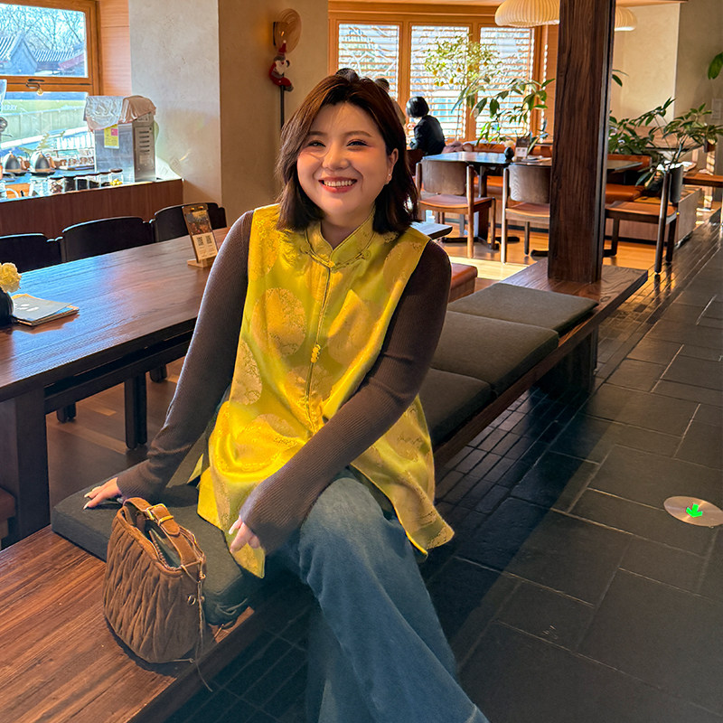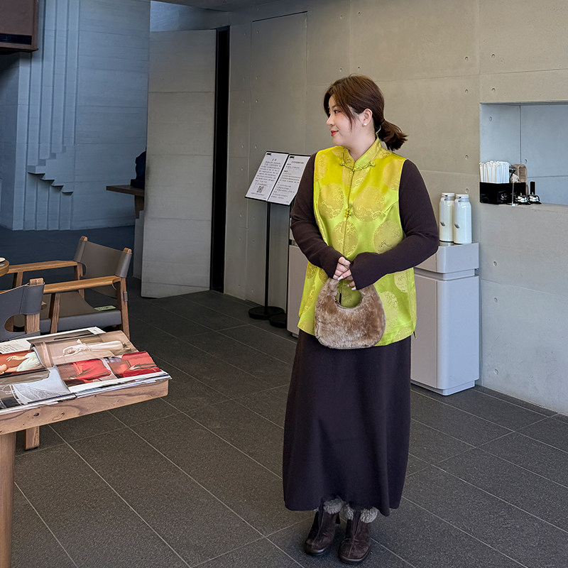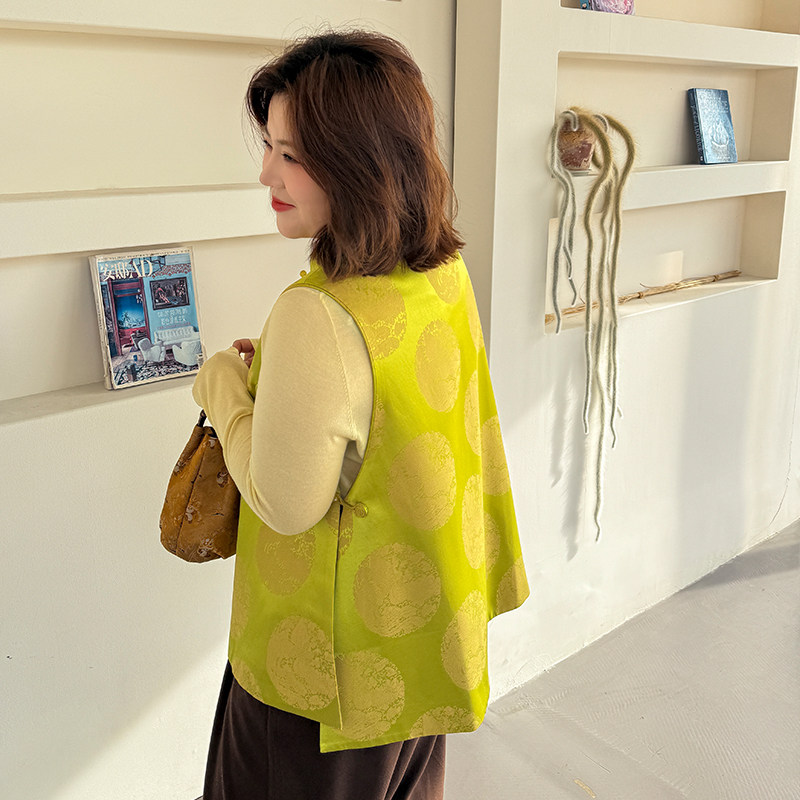 淘宝胖mn马年新中式团凤纹马甲木子理想大码女装提花盘扣立领新年马夹