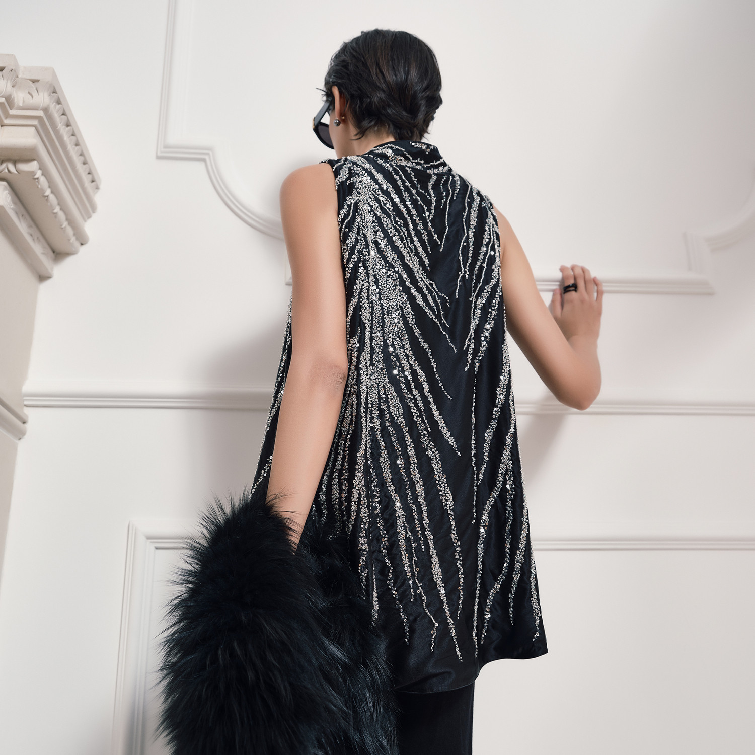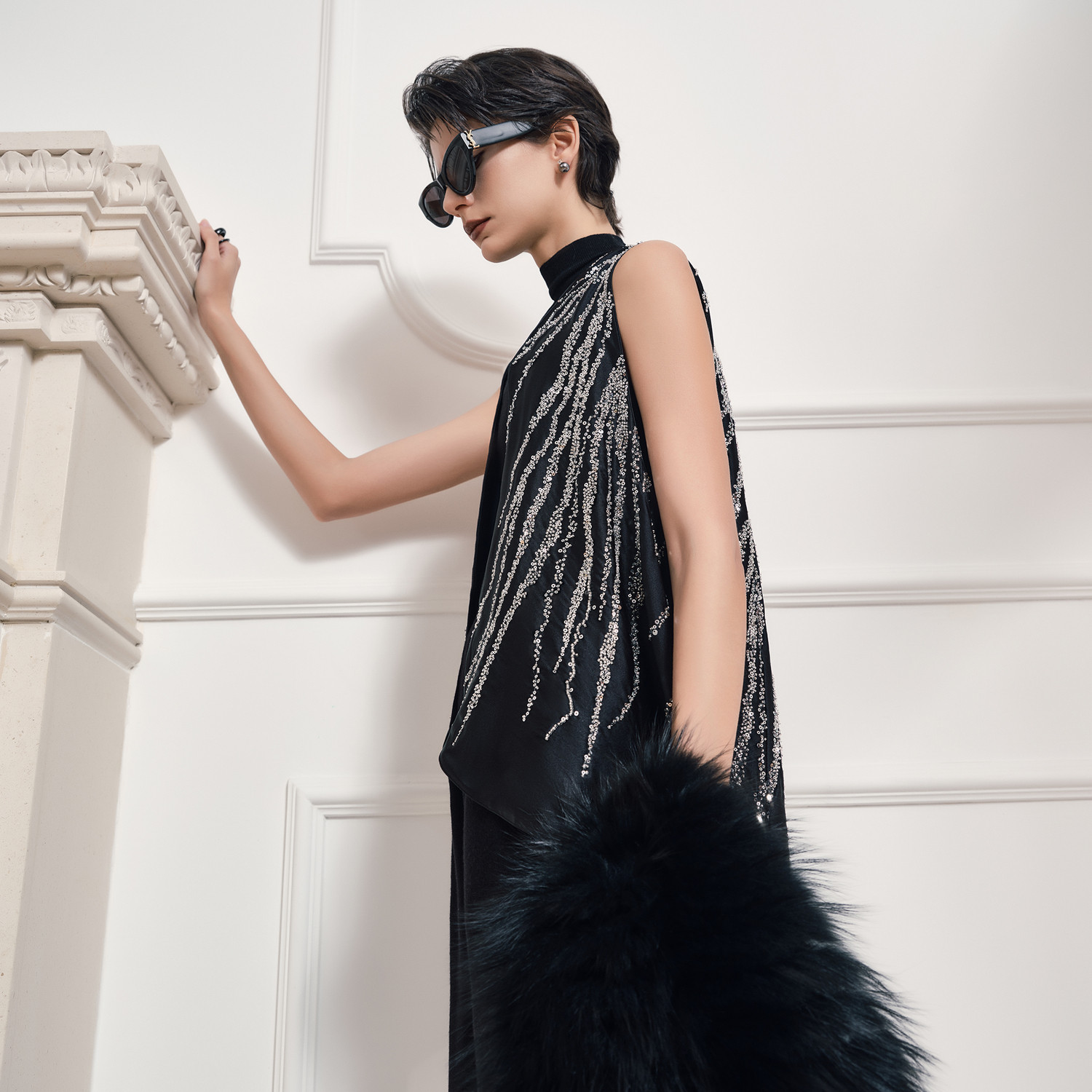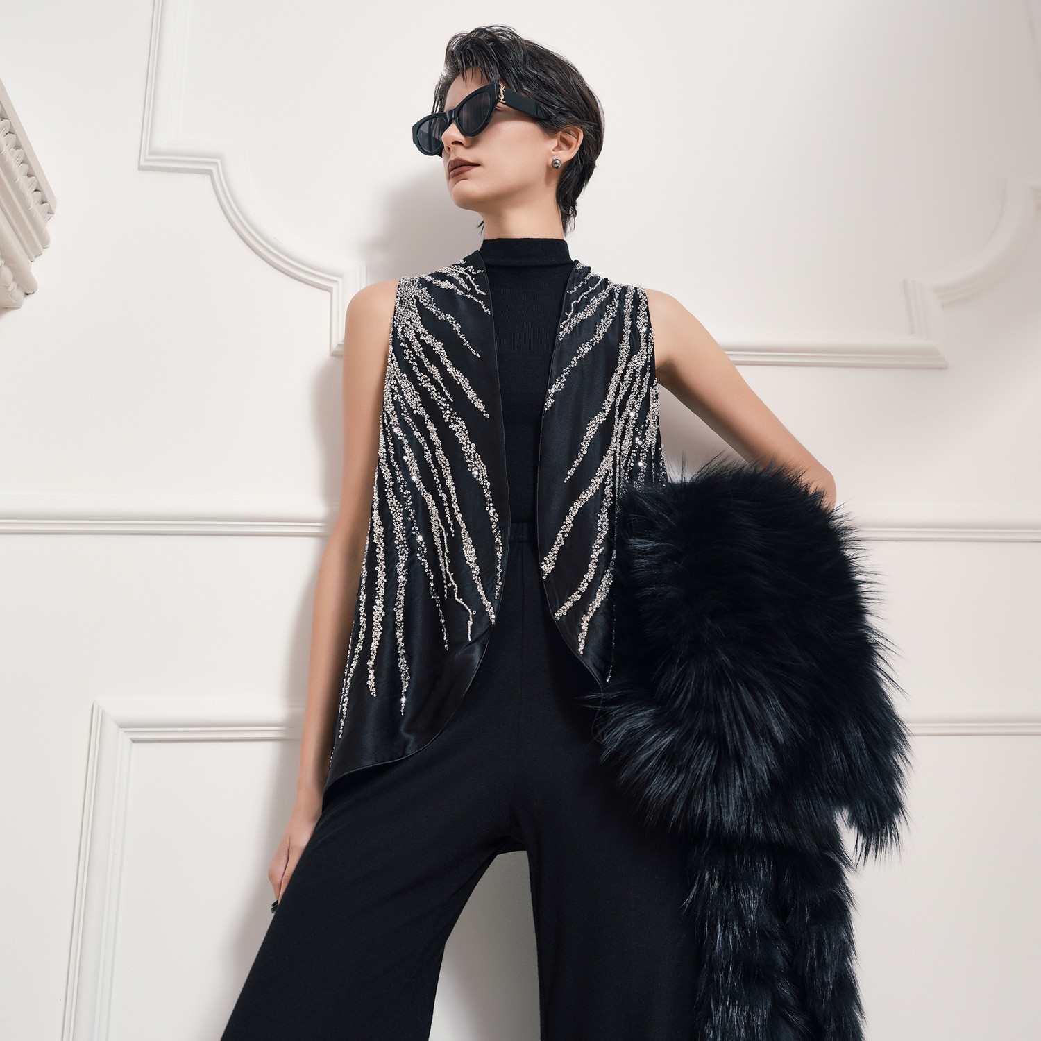 【明星同款】TU女装2026年新款星河落桑蚕丝马甲外套,以经典老钱风为灵感,融合现代极简美学。精选100%天然桑蚕丝面料,触感柔滑,光泽细腻,轻盈透气中尽显高级质感。立体剪裁搭配微廓形设计,轻松勾勒优雅身形,内搭衬衫或高领打底皆宜,通勤、约会皆显从容气质。星河落色调低调奢华,细节处点缀精致手工缝线,彰显匠心工艺。多位明星街拍上身,迅速成为时尚圈焦点单品。无论是搭配阔腿裤打造知性造型,还是叠穿连衣裙演绎复古风情,皆能轻松驾驭,诠释低调而不凡的品味格调。