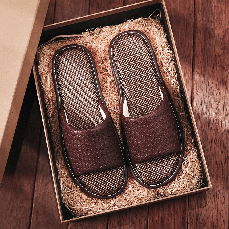 淘宝亚麻藤草凉拖鞋男女夏季室内PU皮编织纹踩屎感防滑软底不臭脚家居