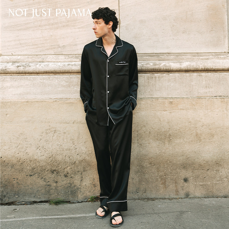 天丁程鑫同款】Not Just Pajama 真丝撞色波浪织带情侣款长袖睡衣