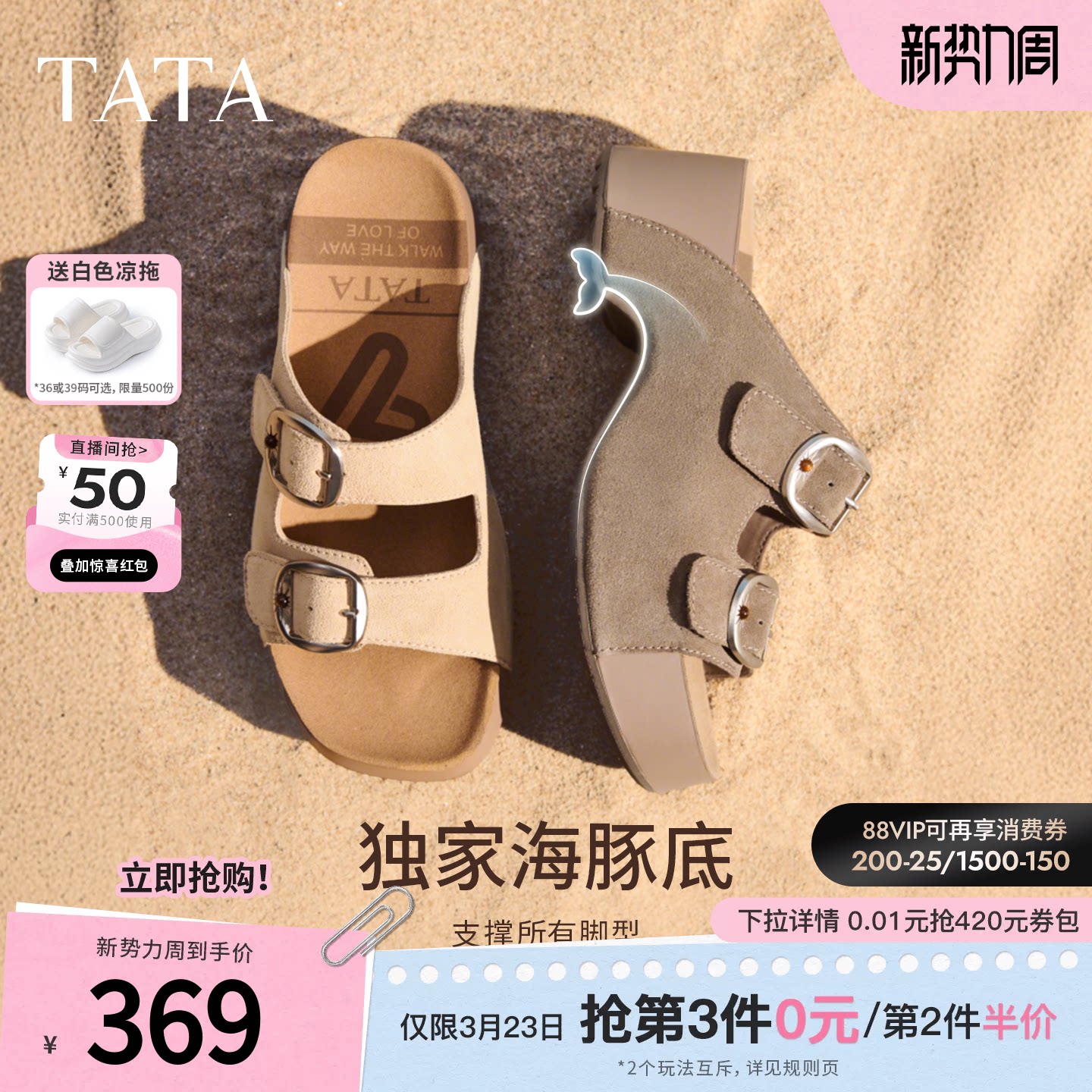 TATA他她小海豚女鞋夏季勃肯鞋厚底凉鞋CML05BT6,融合舒适与时尚,专为追求品质生活的女性设计。采用经典勃肯风格,搭配柔软透气鞋垫与防滑耐磨橡胶大底,久穿不累。厚底设计巧妙增高,拉长腿部线条,兼顾休闲与优雅。简约百搭的款式,轻松驾驭日常通勤、逛街或度假等多种场合。外穿拖鞋设计穿脱便捷,适合炎热夏季。优质材质与精湛工艺确保穿着体验,是夏日衣橱的实用之选。TATA他她以细节诠释品质,让每一步都自信从容。