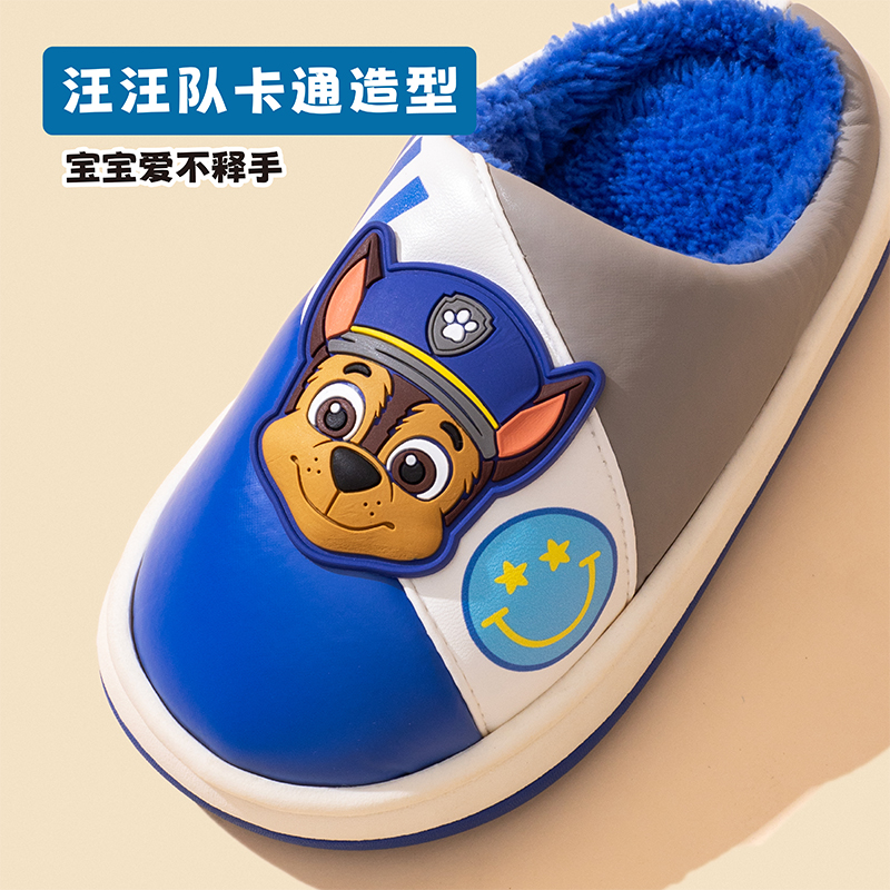 天猫汪汪队儿童棉拖鞋秋冬季防水pu宝宝室内防滑保暖男童女童外穿拖鞋
