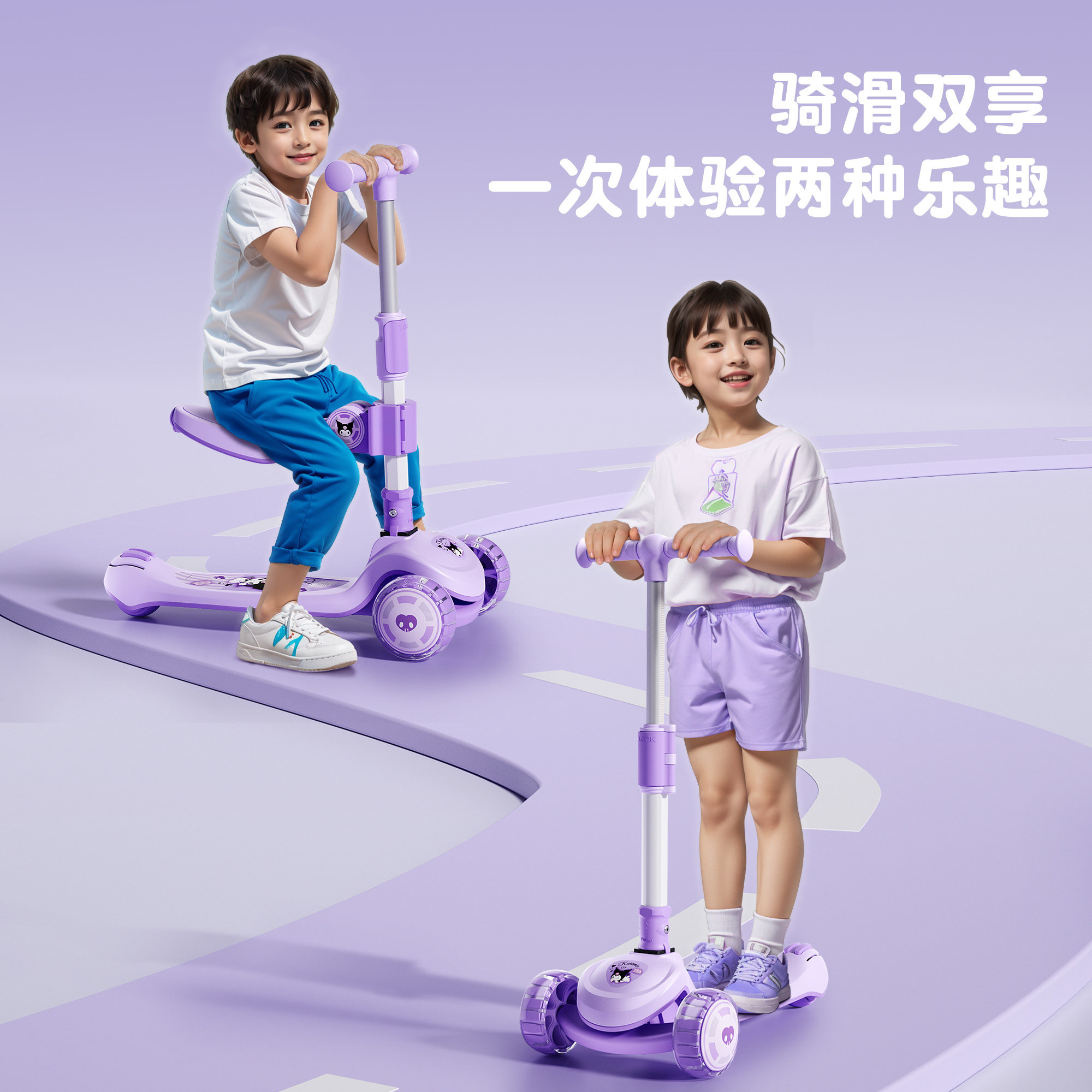 天猫库酷洛米滑板车二合一儿童1-3岁大童6一12岁新款男女童滑滑溜溜车