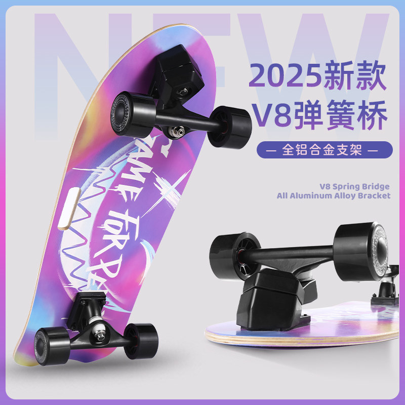 天猫琦牌陆地冲浪板V8初学者滑板男孩女生新手成人专业手提滑板免蹬地