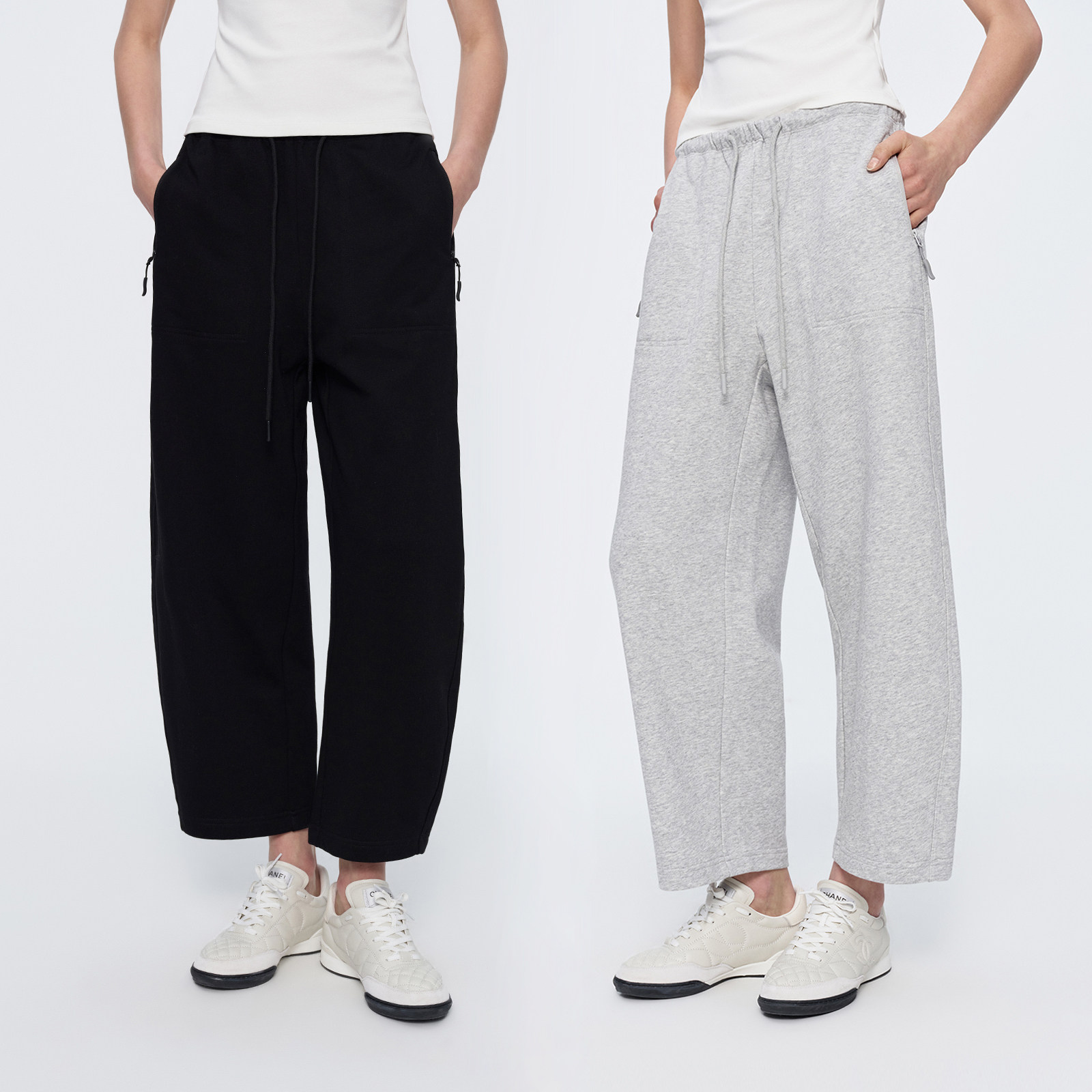 【少女遐想】Uena明星同款黑色双腰头下摆抽绳休闲宽松直筒卫裤女