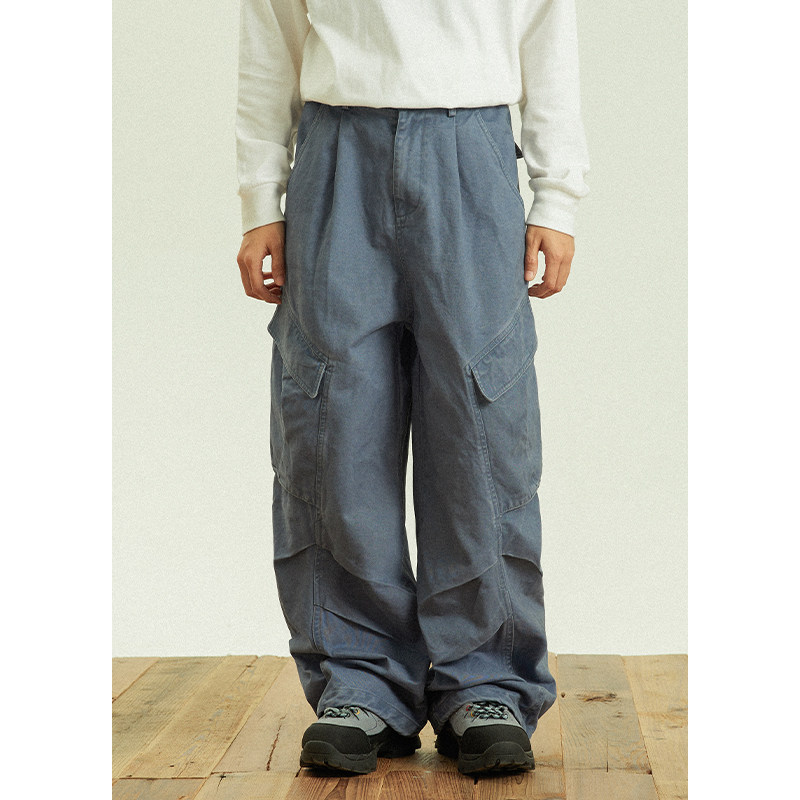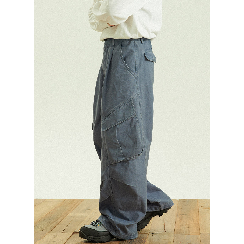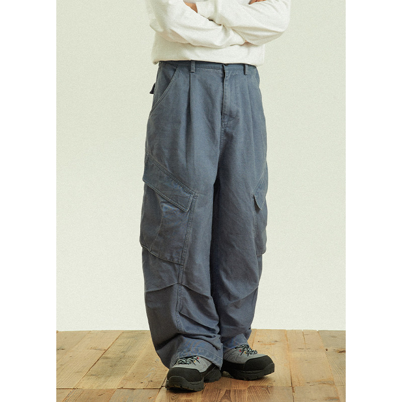 淘宝GoodNorth日系复古法工蓝工装裤男女同款多口袋宽松直筒休闲长裤