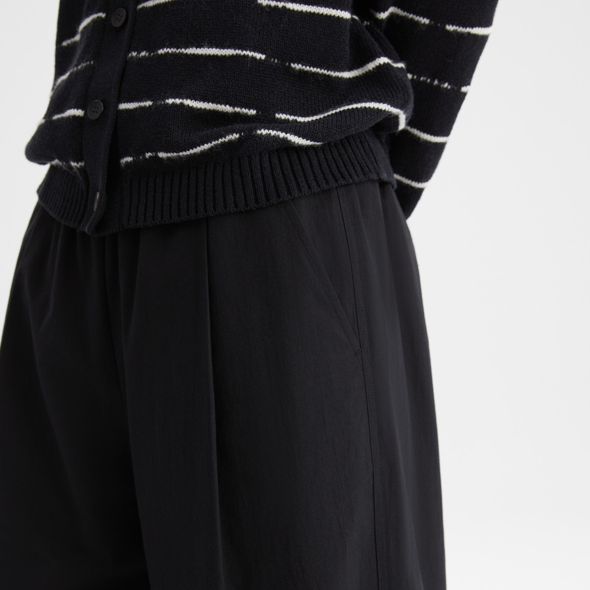 【少女遐想】Uena明星同款黑色双腰头下摆抽绳休闲宽松直筒卫裤女