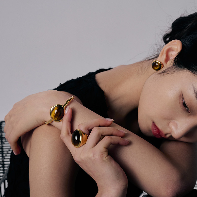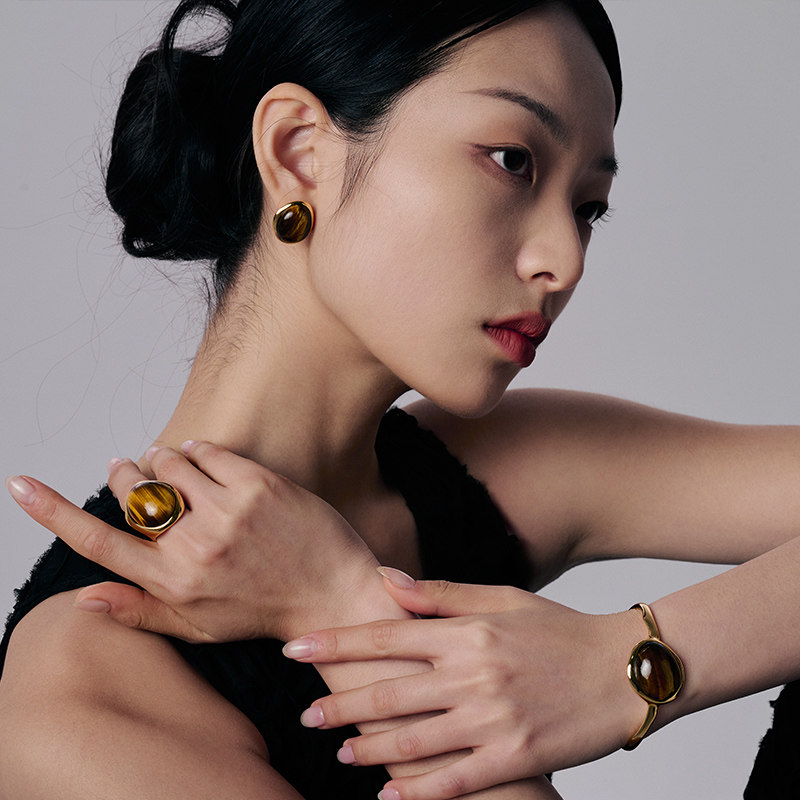 盐岛张婧仪同款白露虎眼石大号耳钉,以复古轻奢美学诠释现代女性魅力。精选天然虎眼石镶嵌,温润光泽中透出细腻猫眼效应,搭配镀金金属边框,彰显高级质感。夸张的大号设计极具视觉张力,轻松成为整体造型的点睛之笔,既复古又时髦。耳钉轻盈佩戴舒适,适合日常搭配或重要场合,展现优雅与个性并存的独特气质。无论是搭配简约连衣裙还是复古西装,都能瞬间提升整体格调,是追求精致生活的女性不可错过的轻奢耳饰。盐岛匠心工艺,细节尽显品质,让每一对耳环都成为腕间故事的延伸。