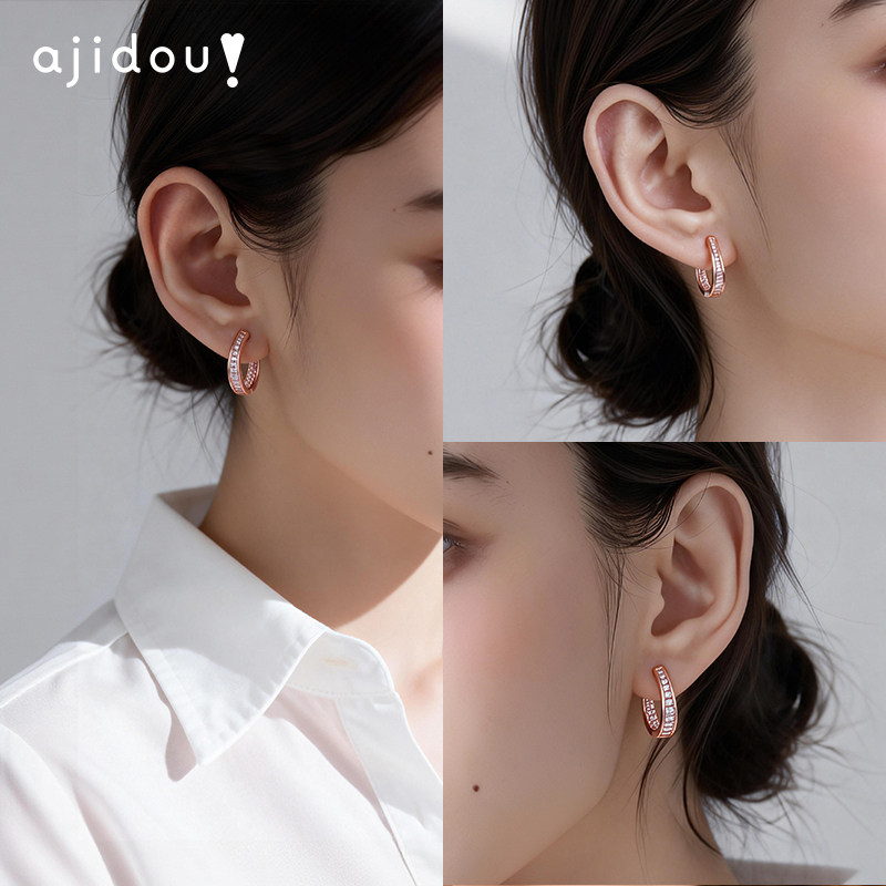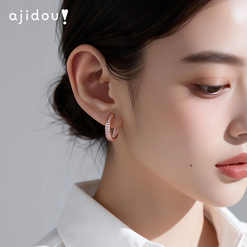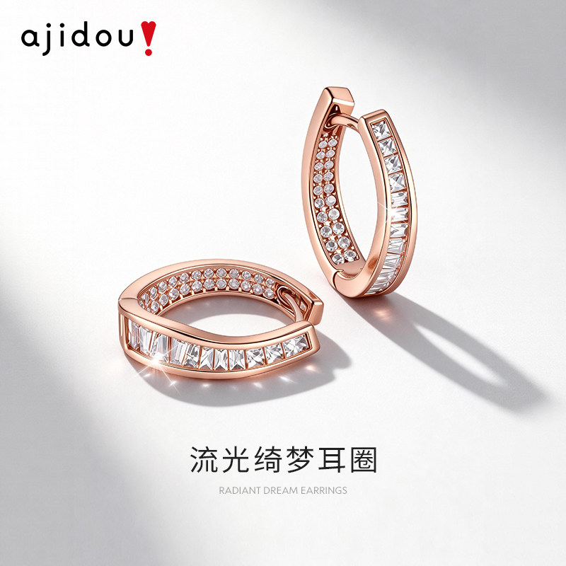 天猫AJIDOU阿吉豆耳饰女款玫瑰金耳环轻奢耳扣配饰气质耳圈圈小众耳钉