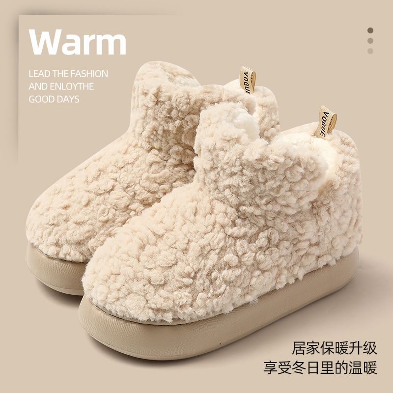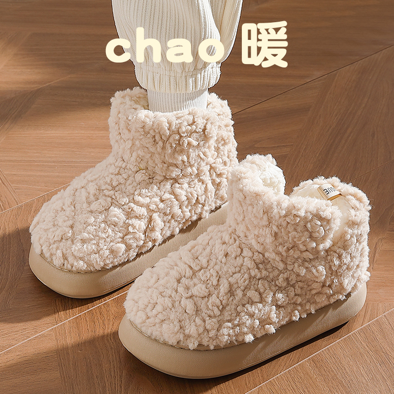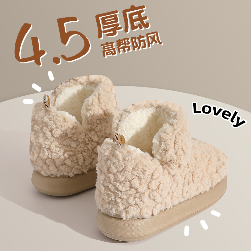 天猫FZT高包跟棉鞋女冬季保暖毛绒厚底踩屎感室内家居防滑棉拖鞋高帮
