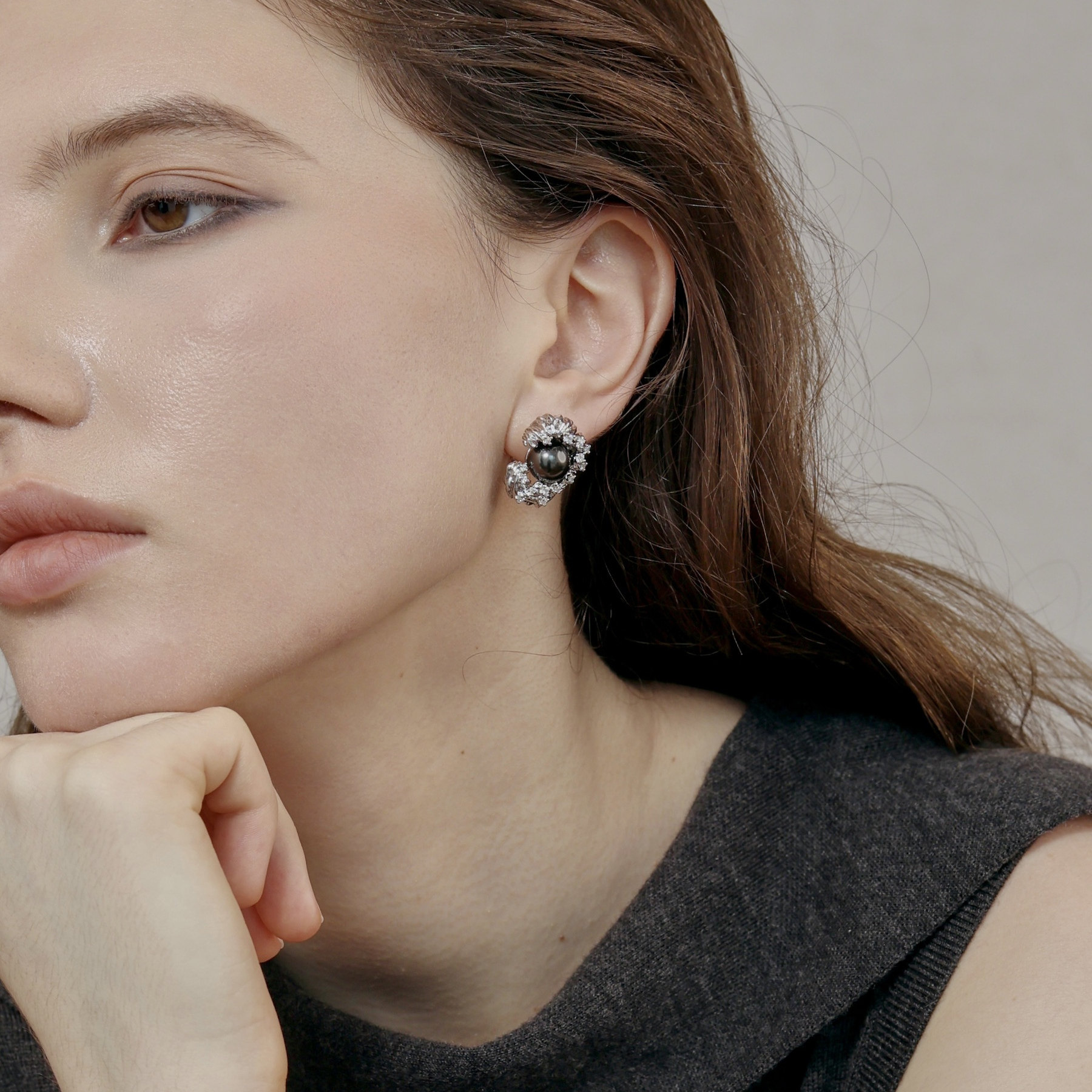 Ceelysees真多麻灰大溪地水晶珍珠耳钉女高级轻奢气质耳环耳饰