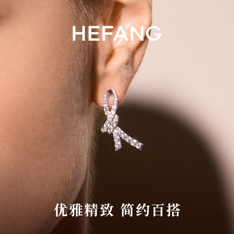 天猫[新品]HEFANG何方珠宝丝带情书耳环耳钉轻奢耳饰配饰生日礼物