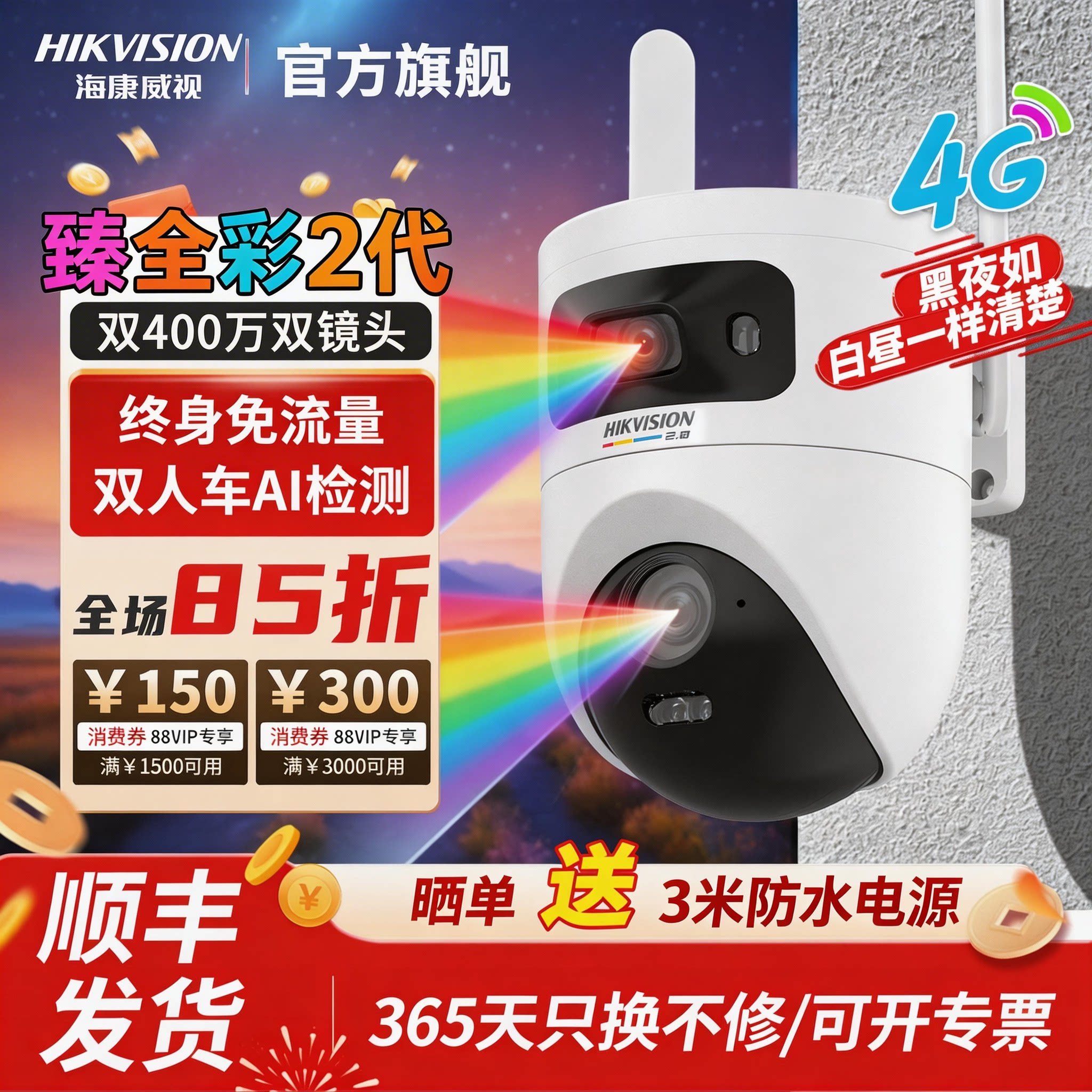 海康威视摄影摄像头4g终身免流量wifi家用监控器360度无死角室外