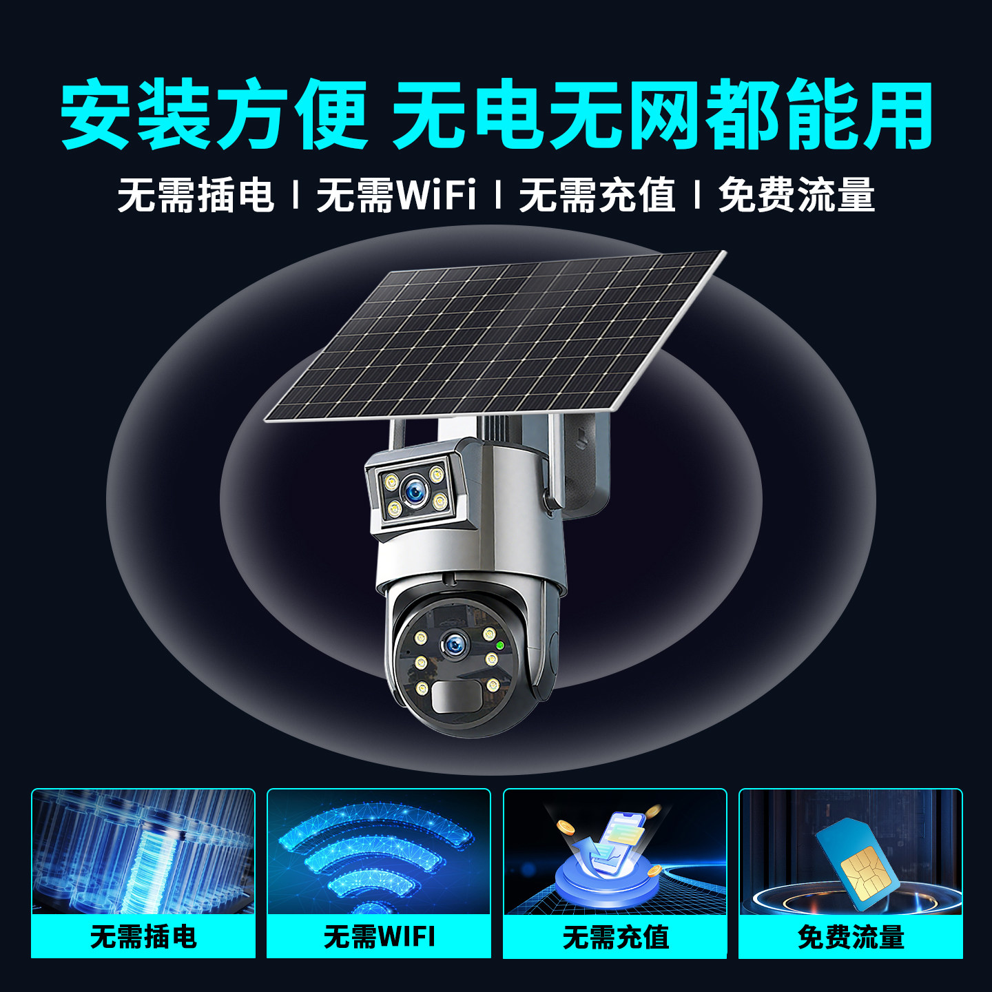 4g摄像头免流量监控器家用手机远程不用wifi网络360度无死角室外