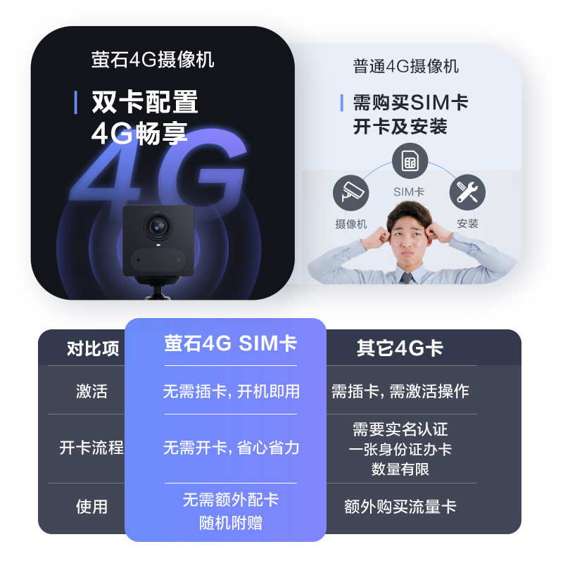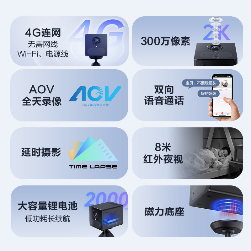 天猫萤石CB2无线电池AI摄像头AOV手机远程监控家用4G免费网络免插电