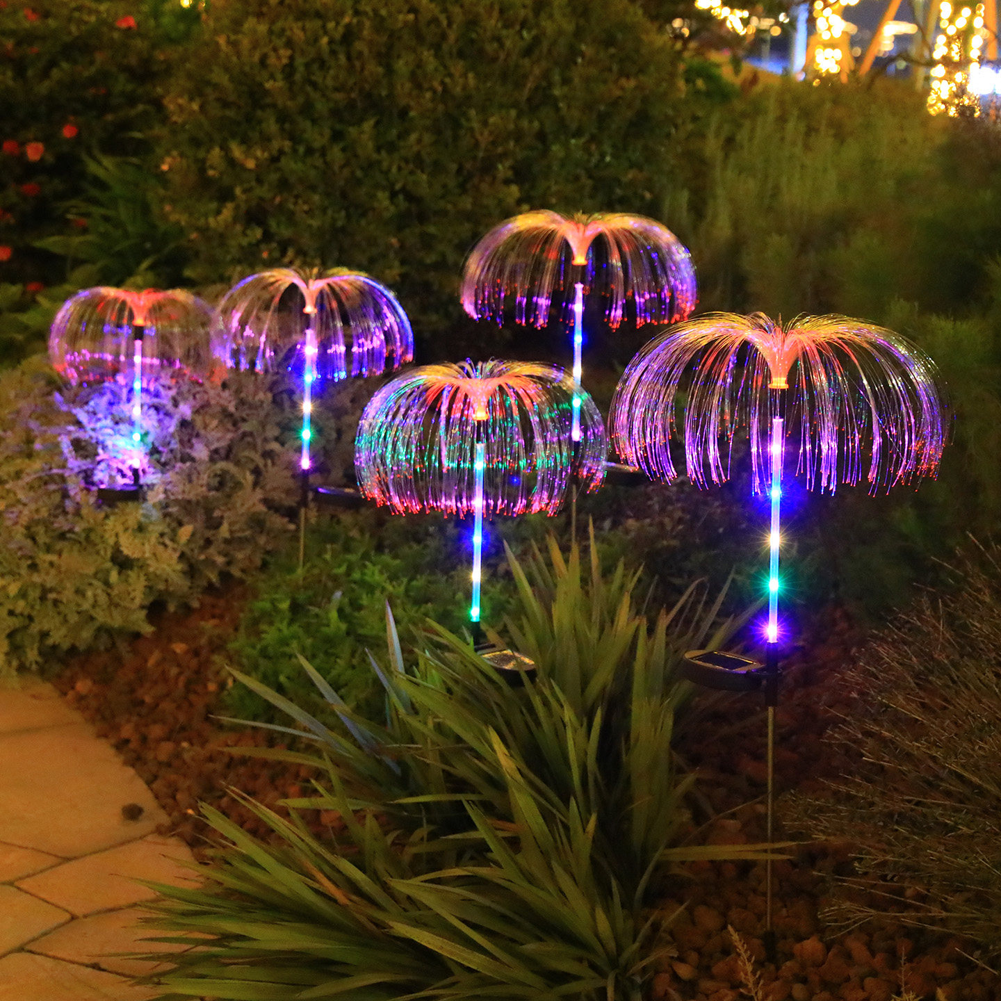 太阳能庭院灯户外七彩变色水母灯室外景观灯花园装饰灯地插芦苇灯