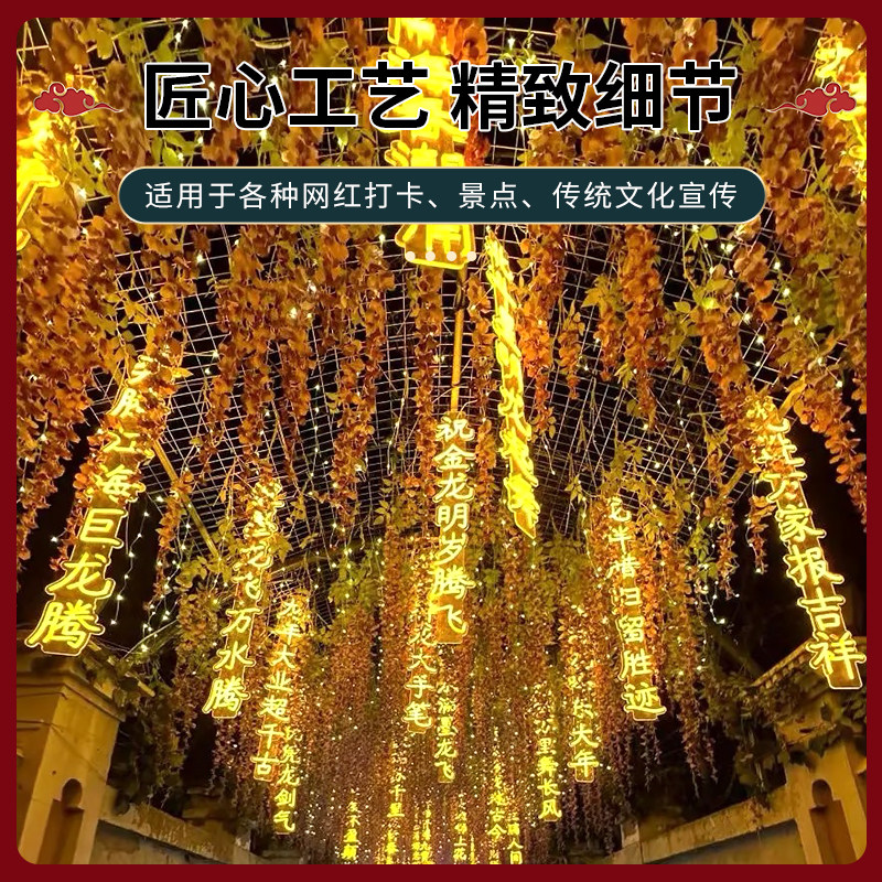 淘宝支持定制氛围灯中式古诗词灯串LED景区装饰悬挂式节庆条幅发光灯