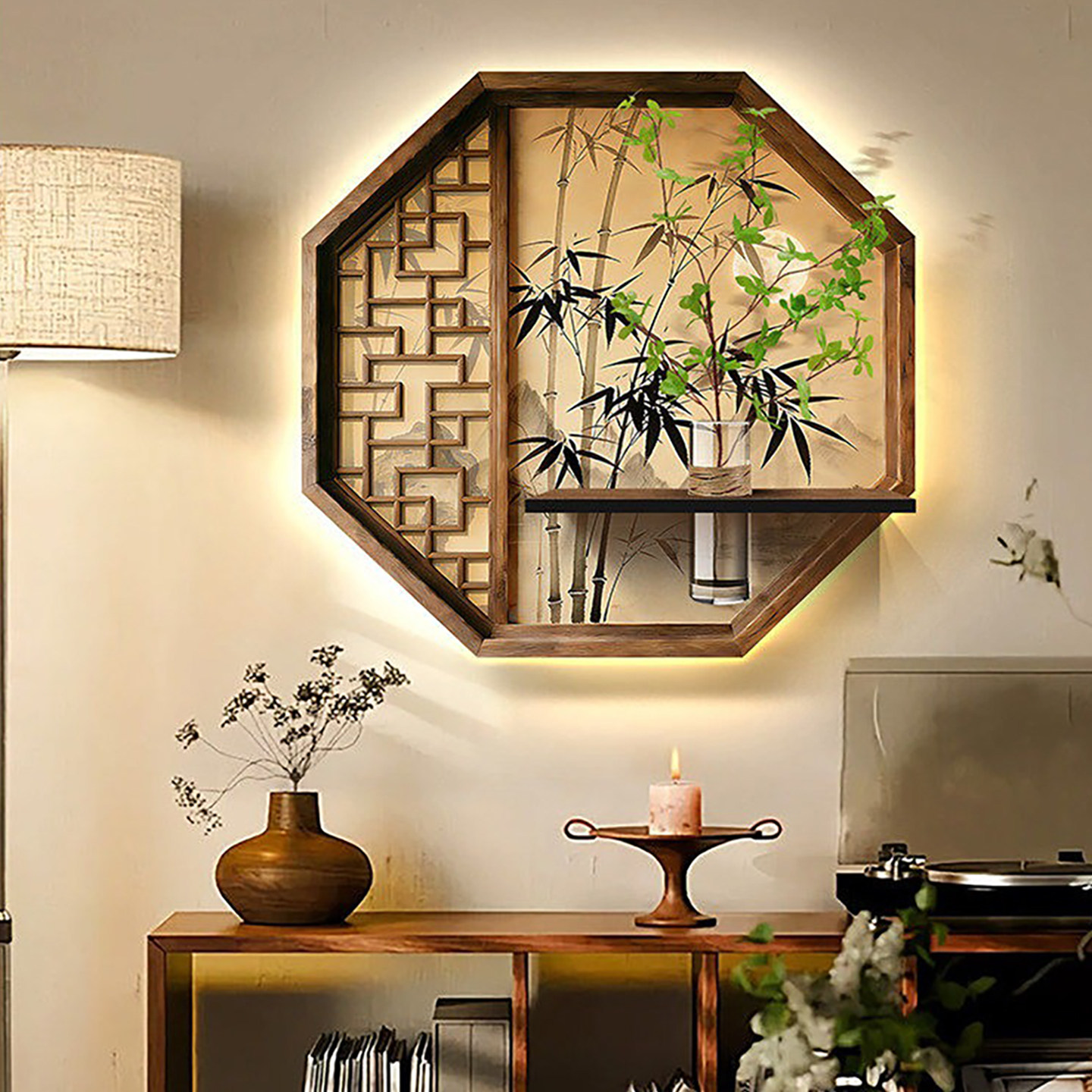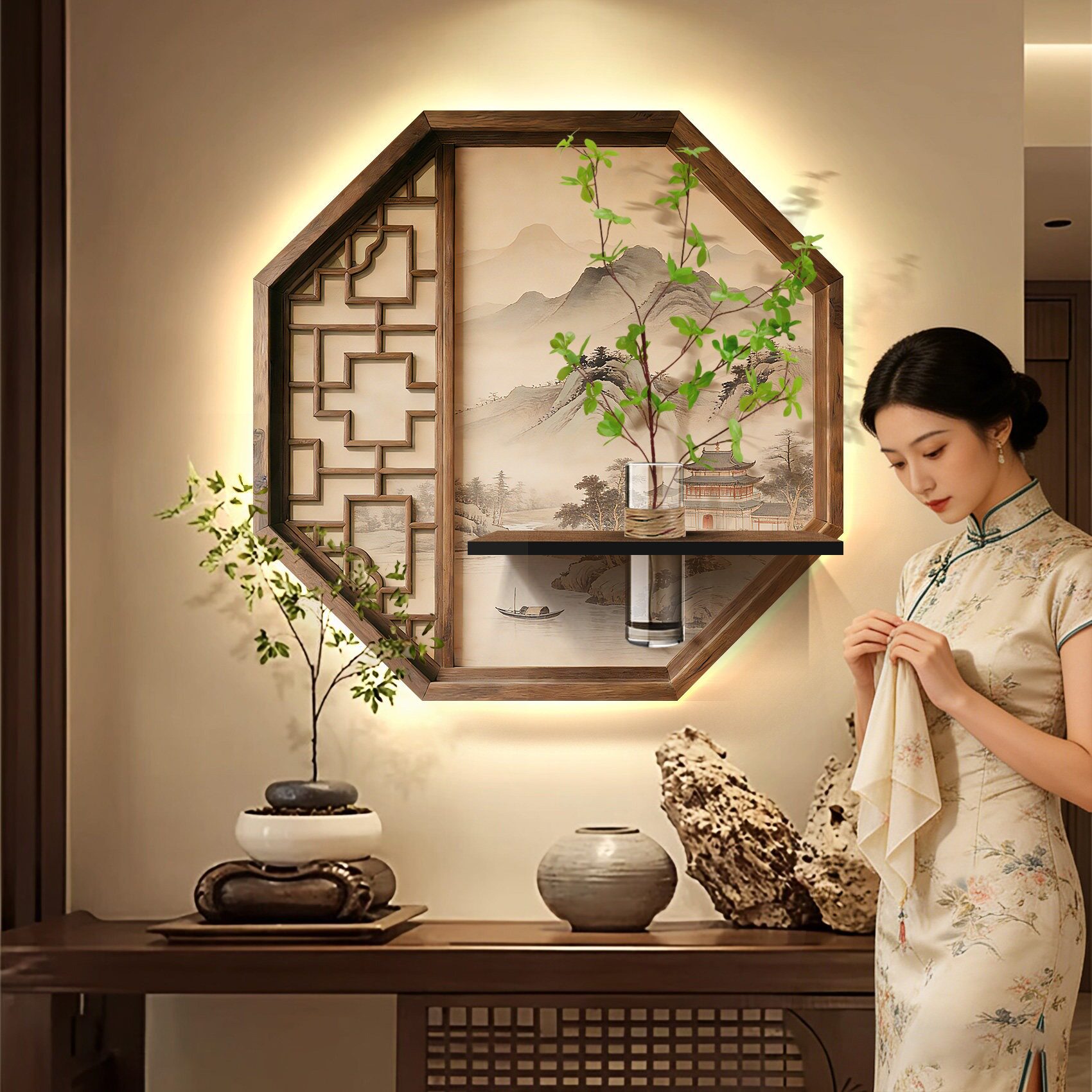 淘宝宋代美学茶室氛围布置挂画玄关走道背景墙壁灯画茶楼带绿植装饰画