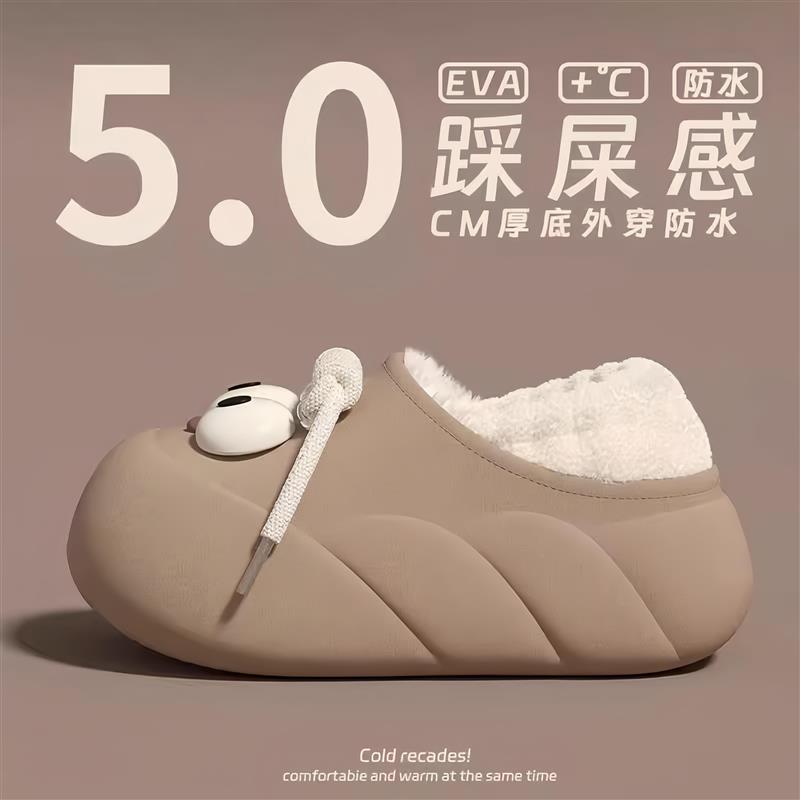 厚底毛毛拖鞋女外穿冬季保暖加绒加厚包头半拖雪地靴2025新款