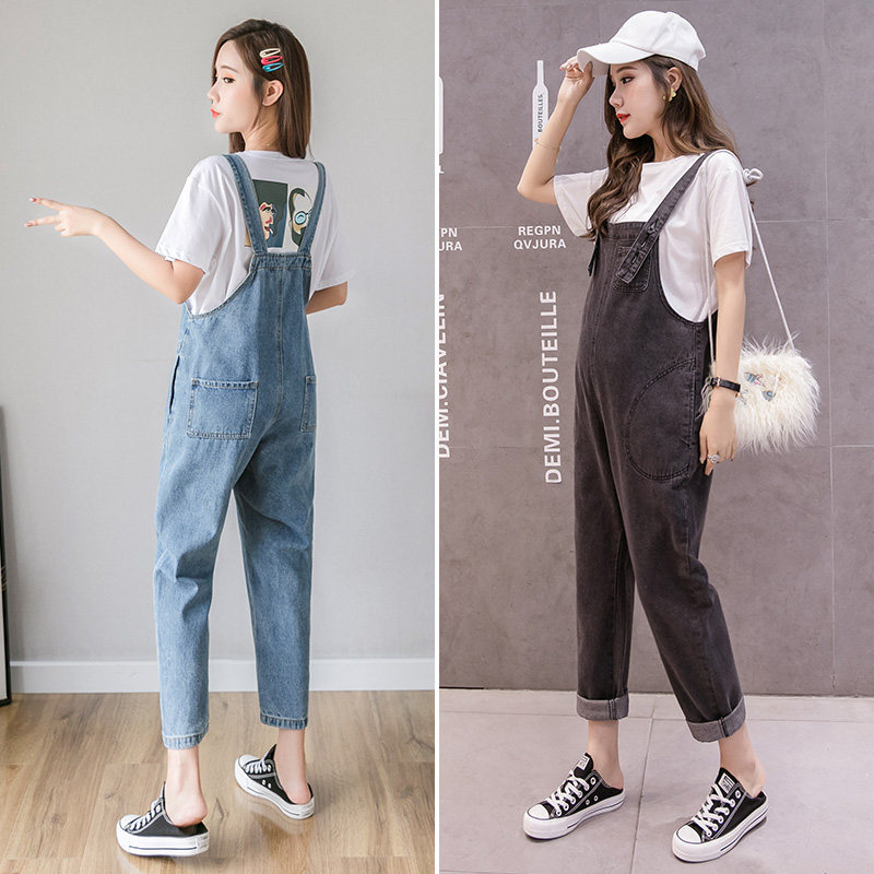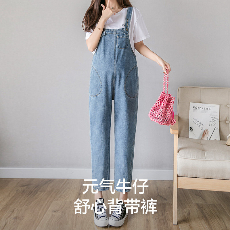 淘孕妇背带裤春秋新款气质减龄小个子百搭宽松牛仔吊带裤春季长裤