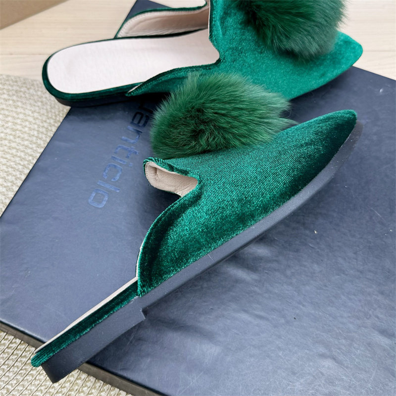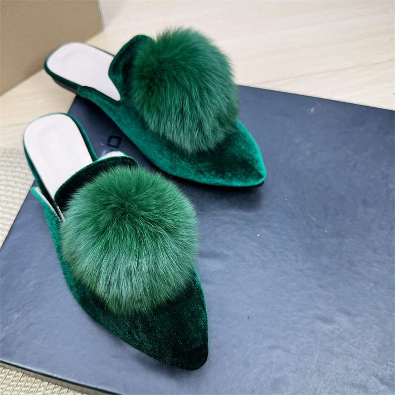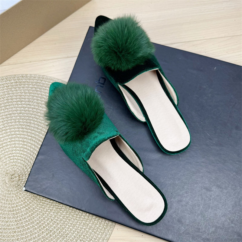 2026年夏季欧美风新款女士拖鞋,融合丝绒质感与时尚尖头设计,打造优雅与性感兼具的半拖穆勒鞋。鞋面采用高级丝绒材质,触感柔滑,光泽细腻,搭配蓬松毛毛球装饰,增添俏皮灵动感。尖头平底设计拉长腿部线条,既舒适又显气质,适合日常出街、度假或休闲聚会。后跟开放式结构方便穿脱,兼顾实用与美观。整体风格兼具复古与摩登,完美诠释现代女性自信从容的时尚态度,是2026年夏季不可或缺的潮流单品。