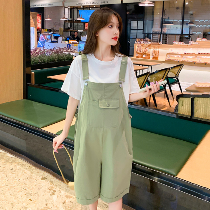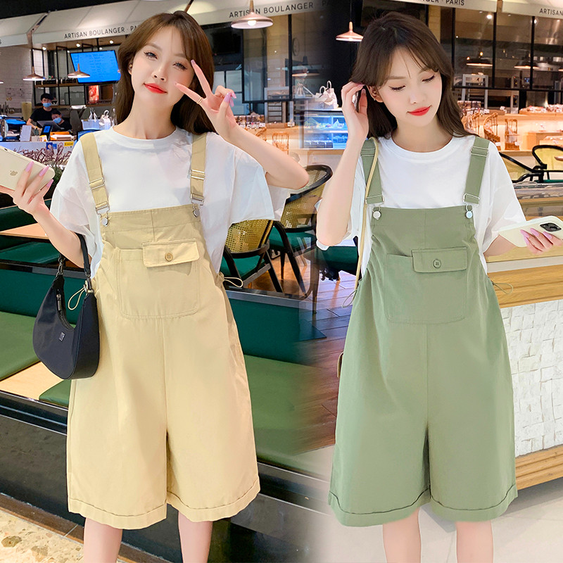 淘宝孕妇背带裤夏季薄款短袖吊带短裤套装小个子宽松阔腿工装裤孕妇装