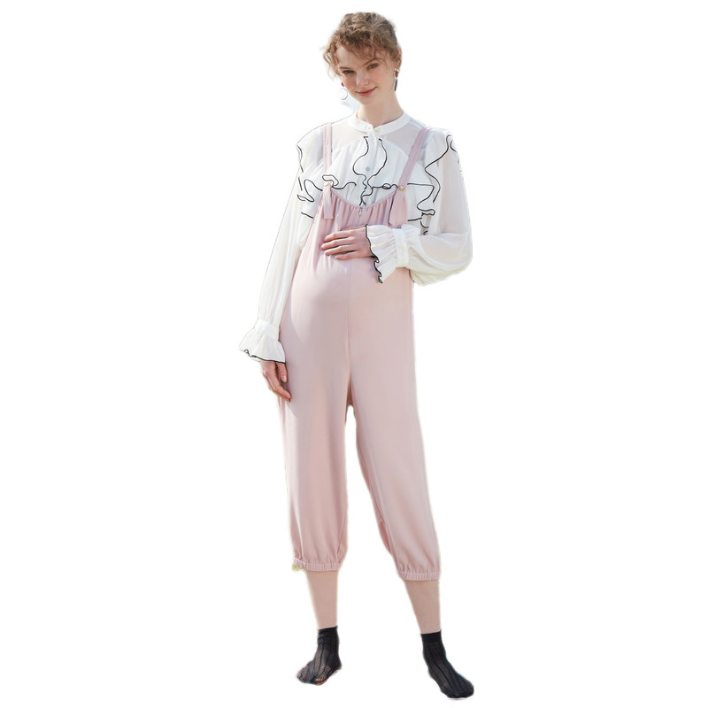 天猫快乐屋前开拉链乔其纱八分孕妇背带裤2026新款束口裤时尚夏款显瘦