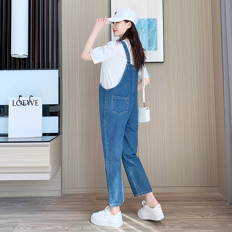 孕妇牛仔背带裤春秋款宽松大码吊带裤韩版休闲时尚减龄春季孕妇装