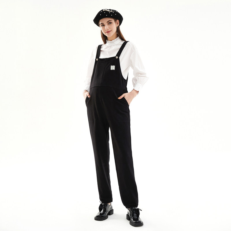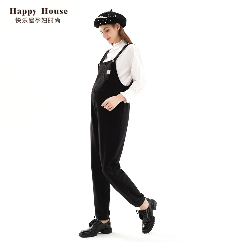 天猫快乐屋孕妇背带裤弹力针织裤子束口装饰休闲裤前开拉链托腹裤长裤