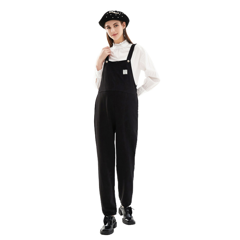 小个子孕妇背带裤套装秋装时尚宽松休闲九分八分牛仔吊带裤女春秋