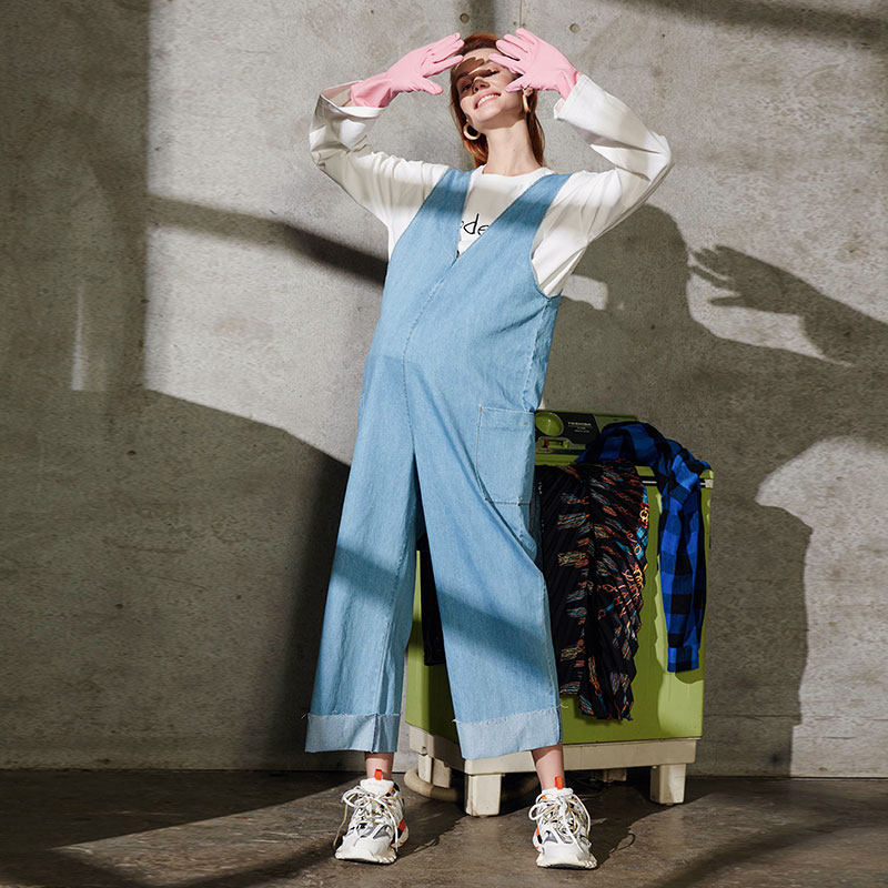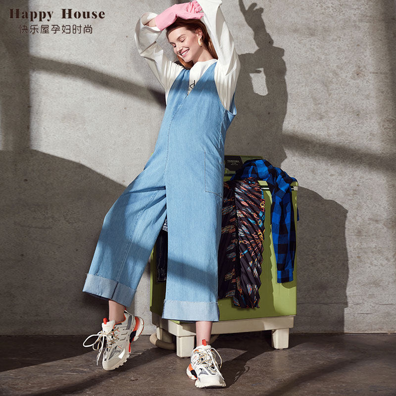 天猫快乐屋孕妇牛仔阔腿背带裤2026春夏新款宽松直筒裤时尚外穿裤子