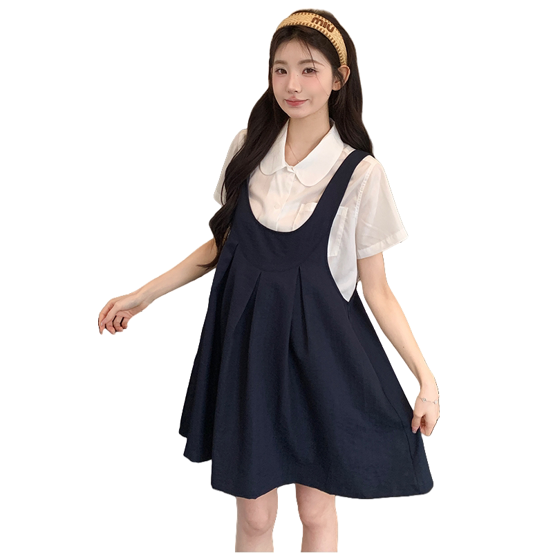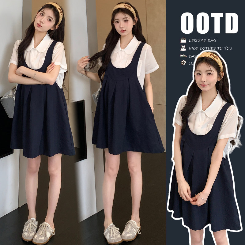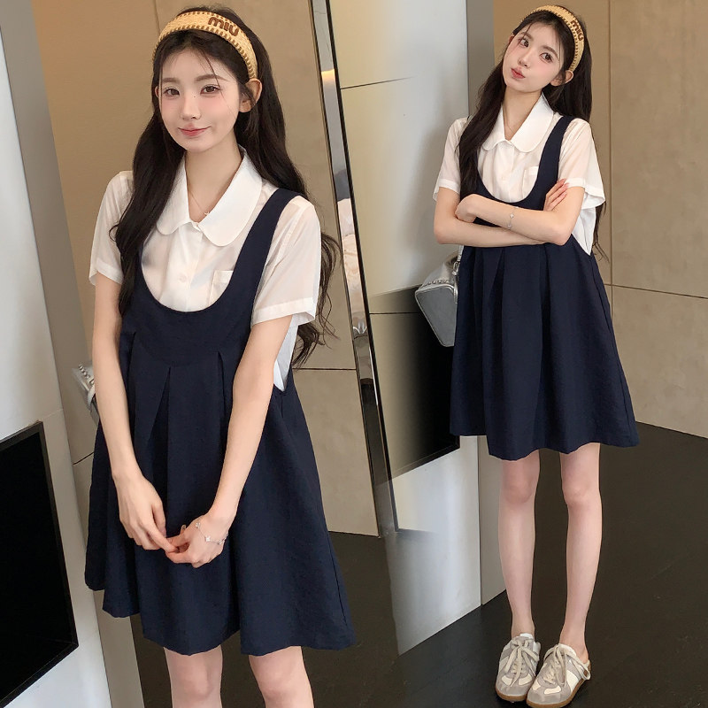 天猫婧麒孕妇背带裙夏季2026新款洋气遮孕肚高品质减龄衬衣短裙两件套