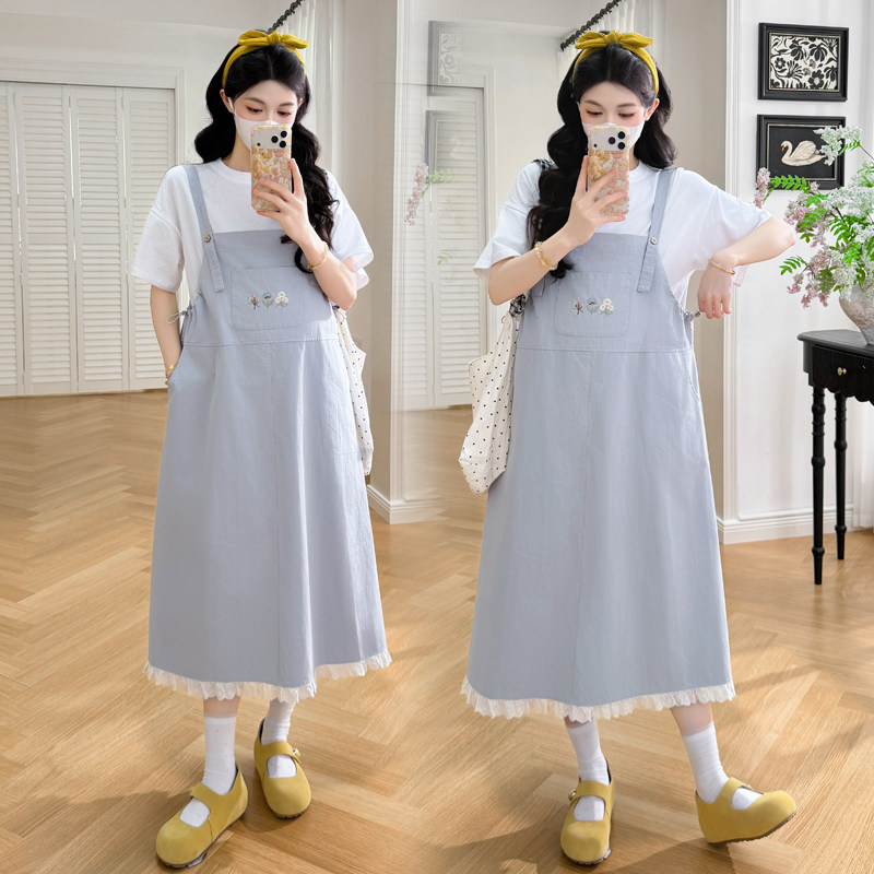 淘宝大码孕妇装短袖连衣裙套装夏季2026新款减龄背带裙t恤两件套200斤