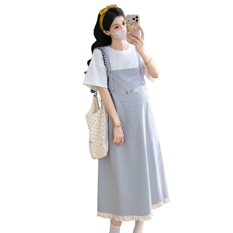 费雪孕妇牛仔背带裙春季新款连衣裙大码春秋两件套装时尚外穿春装