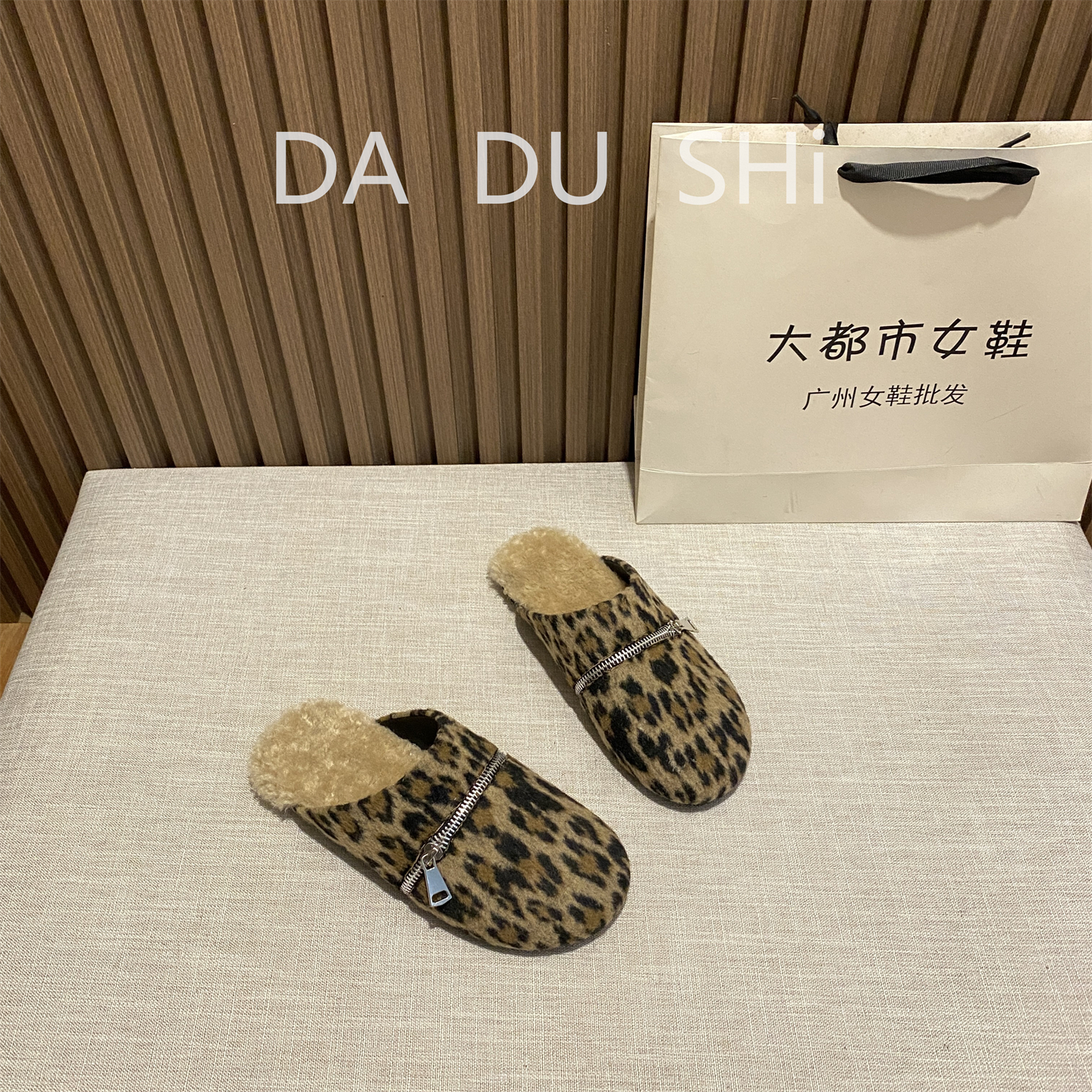淘宝厚底勃肯鞋女包头半拖鞋拉链装饰毛毛内里百搭软底懒人穆勒鞋