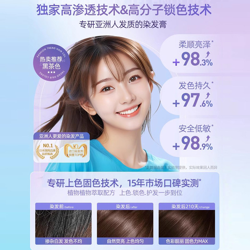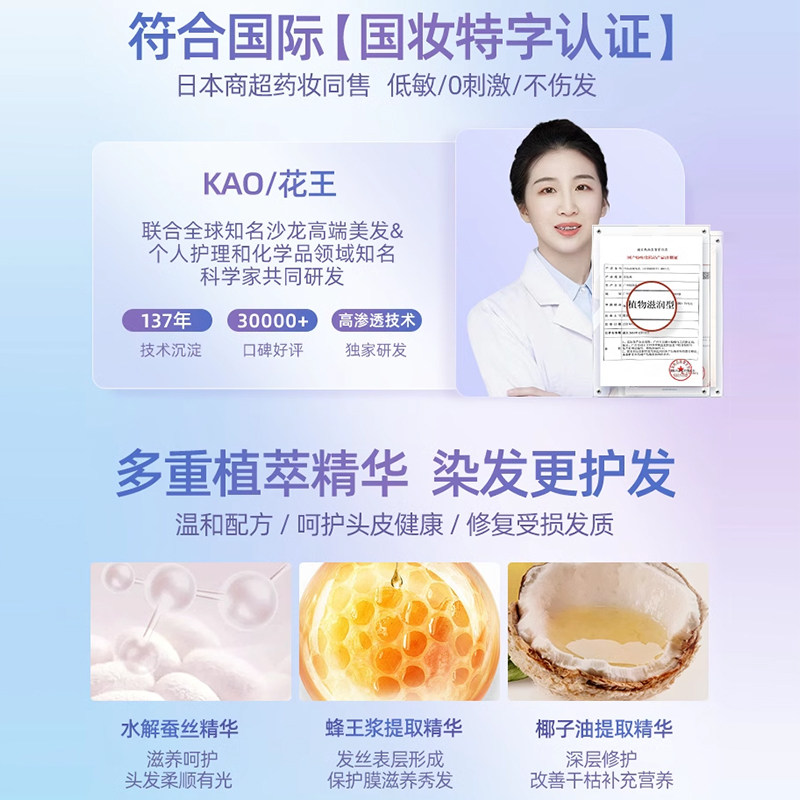 天猫花王泡沫染发剂雾霾灰棕染发膏天然植物纯泡泡染膏女蓝黑茶色正品