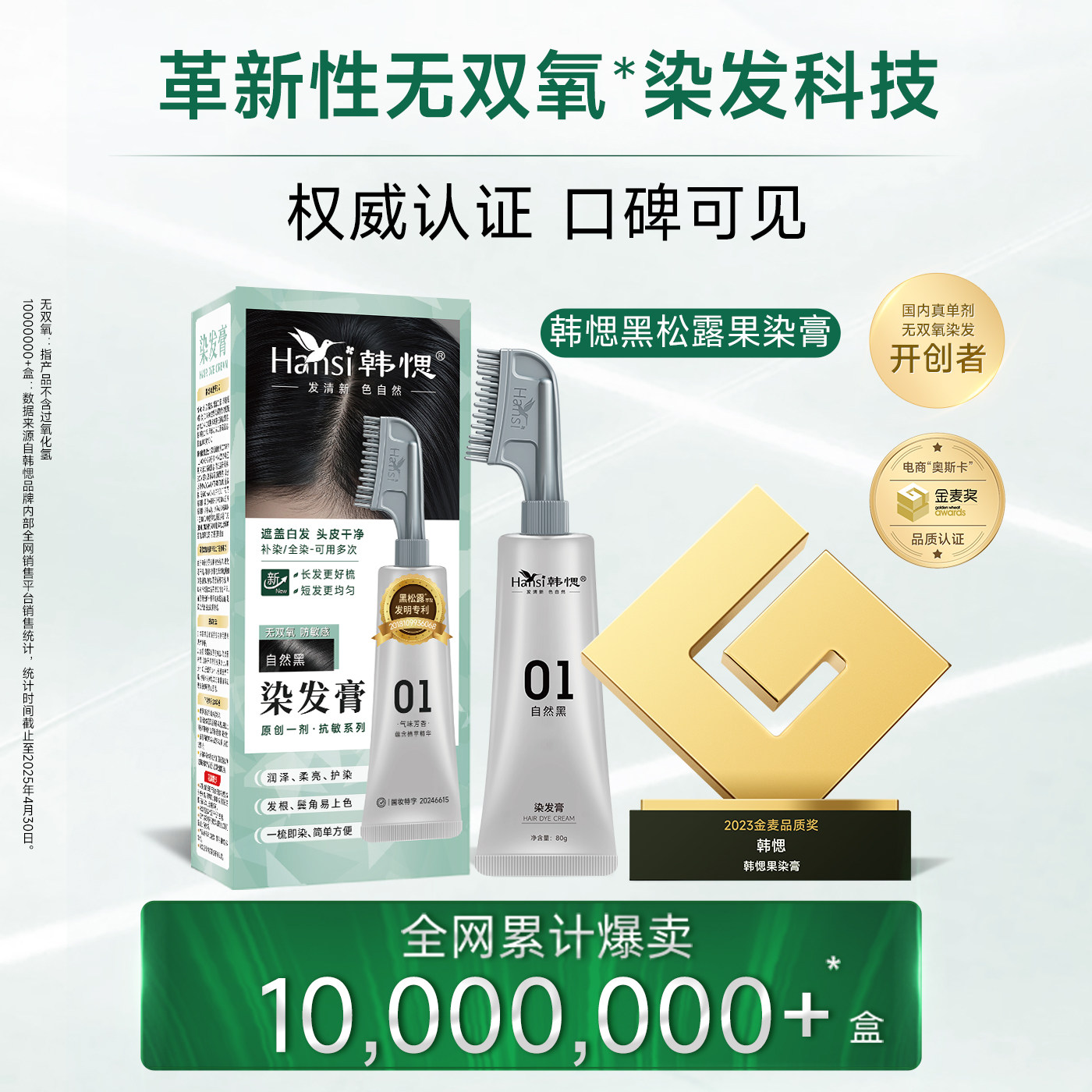韩愢染发膏单剂男士专用染发剂无氨细致染植遮白发物纯染发梳正品