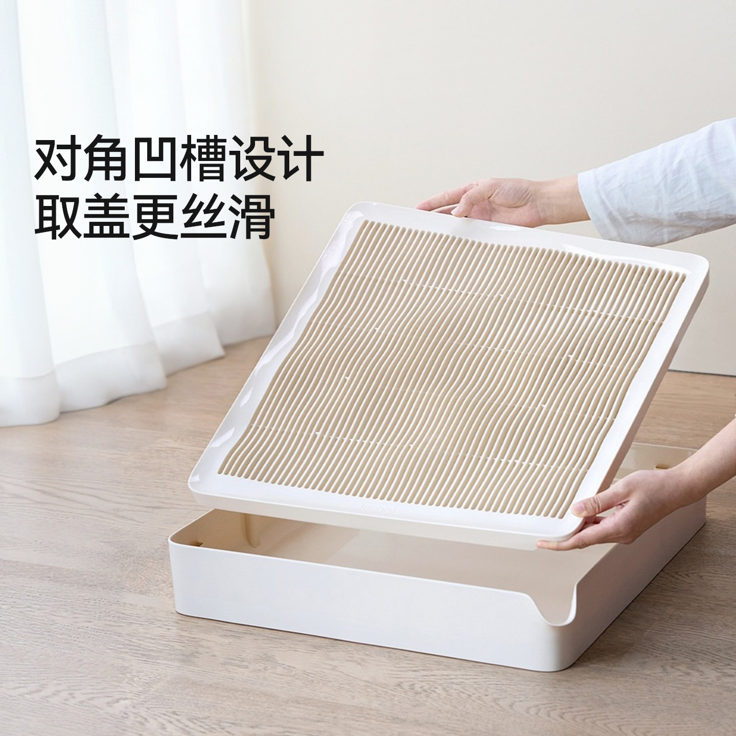 Meoof觅凹无边泳池控砂台是一款专为猫咪设计的智能猫砂管理解决方案。其独特的无边泳池造型踏板,有效承接猫咪进出猫砂盆时带出的砂粒,底部漏沙设计让猫砂快速回落,保持地面整洁。踏板表面采用防滑纹理,不卡脚、不伤爪,提升猫咪使用舒适度。搭配配套猫砂垫,双重拦截,大幅减少带砂问题。整体结构易于拆卸清洗,材质安全耐用,适配多数标准猫砂盆。Meoof觅凹以人性化设计守护家居环境,让养猫更轻松、更洁净,是注重生活品质的铲屎官的理想之选。