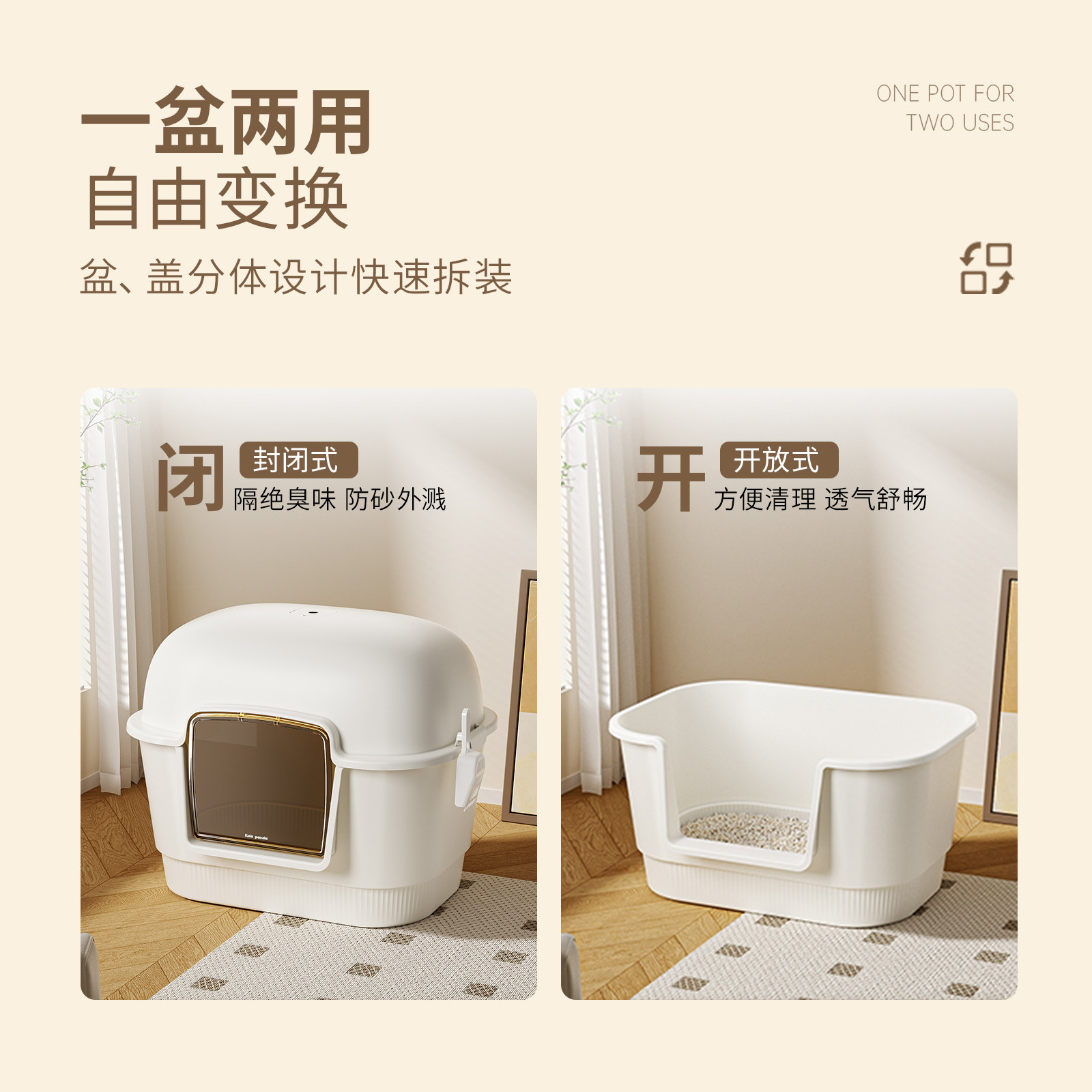天爱丽思超大号半全封闭式防臭宠物厕所防外溅专用猫砂盆高颜值隔臭